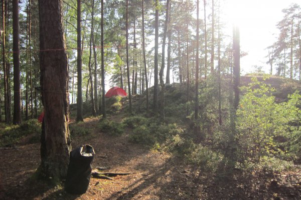 Los ging es für uns um 0:30 Uhr mitten in der Nacht in Puttgarden. Dort sammelte uns einer der Reisebusse von scandtrack ein. Wir waren in der Nacht unterwegs und wurden mit zwei Fährfahrten nach Schweden gebracht. Gegen 11:30 Uhr kamen wir endlich im Basislager an. Dort konnten wir uns erst einmal stärken, bevor wir unseren Guide kennenlernen konnten und unsere Sachen in das nächste Lager tragen mussten. Dort verstauten wir unsere Sachen in wasserdichten Packsäcken und bekamen eine kurze Einweisung ins Kanufahren. Danach haben wir unsere Essensvorräte und Sachen zu den Booten getragen. Dann ging es auch gleich los und circa eineinhalb Stunden später erreichten wir unsere erste Insel. Dort konnten wir die anderen unserer vierzehnköpfigen Gruppe kennenlernen. Doch zuerst mussten wir wieder auf den See hinausfahren um Trinkwasser zu holen. In der Zeit haben die anderen unsere Vorräte sortiert. Am Abend konnten wir dann unsere erste gekochte Outdoormalzeit genießen. Leider konnten wir den Abend nicht an einem Lagerfeuer ausklingen lassen, da Waldbrandstufe 3 herrschte. Geschlafen wurde dann entweder im Zelt oder unter freiem Himmel.