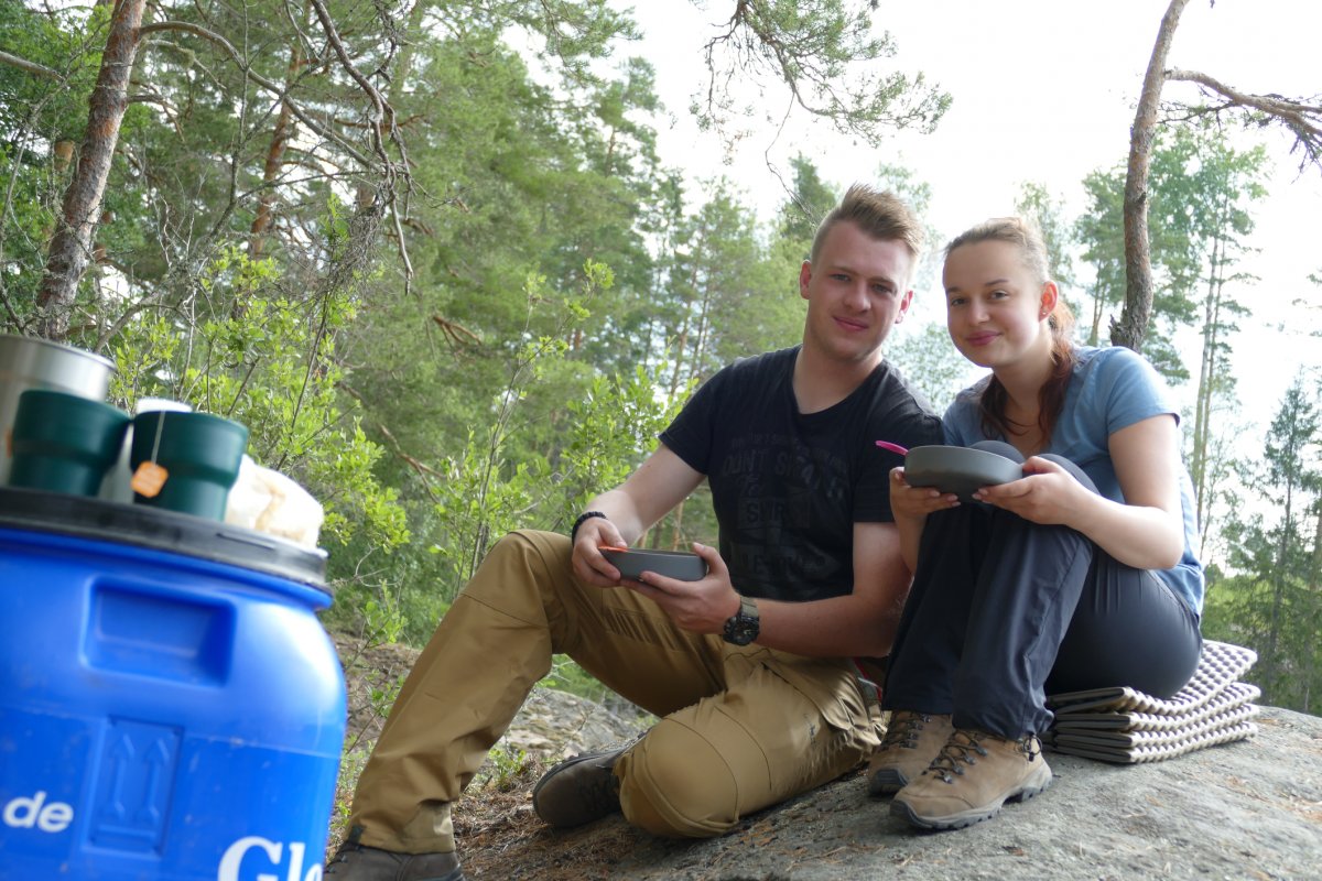 Nach einer langen Anreise sind wir am Outdoorcamp Höglund angekommen. Dort wurden wir freundlich begrüßt, haben verschiedene Informationen und Ausrüstungsgegenstände bekommen. Für die Verpflegung war ebenfalls gesorgt.