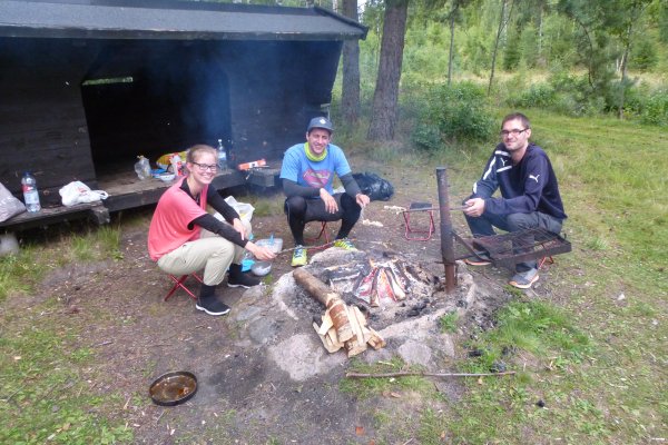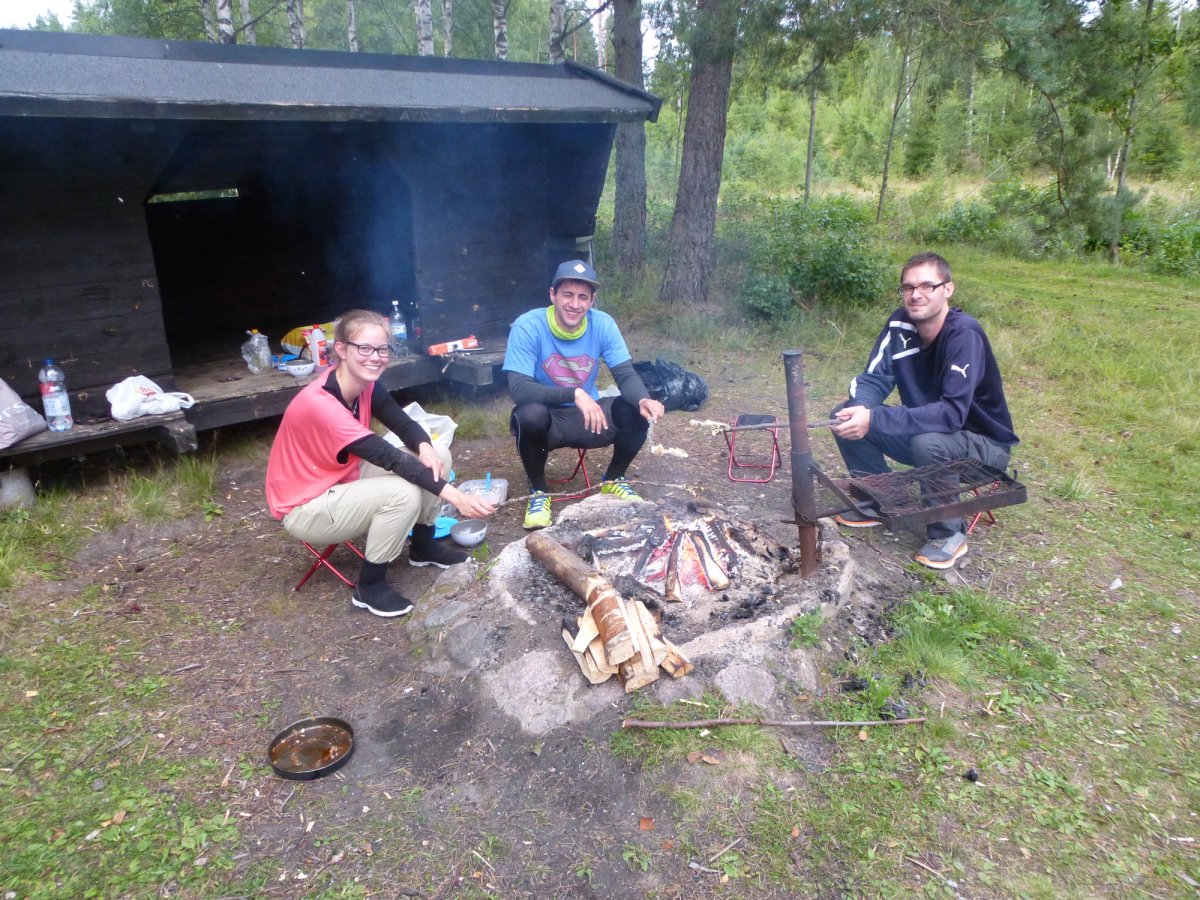 Es ist wirklich unglaublich, was man daraus alles Leckeres zubereiten kann: natürlich Stockbrot in verschiedenen Varianten (süß mit Zucker überstreut oder herzhaft mit Zwiebelstückchen), dann Brötchenteig, Pfannkuchen für das Frühstück (besonders mit Blaubeeren sehr lecker) und auch „Elchköttel“ (Teig-Bällchen mit Nutella). Unsere Abende beschlossen wir entspannt und glücklich am knisternden Lagerfeuer bei dem besagten Stockbrot und Kartenspielen.