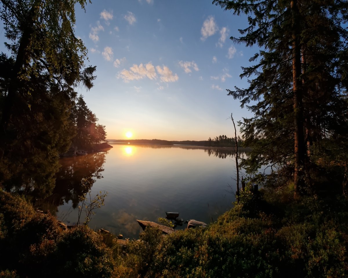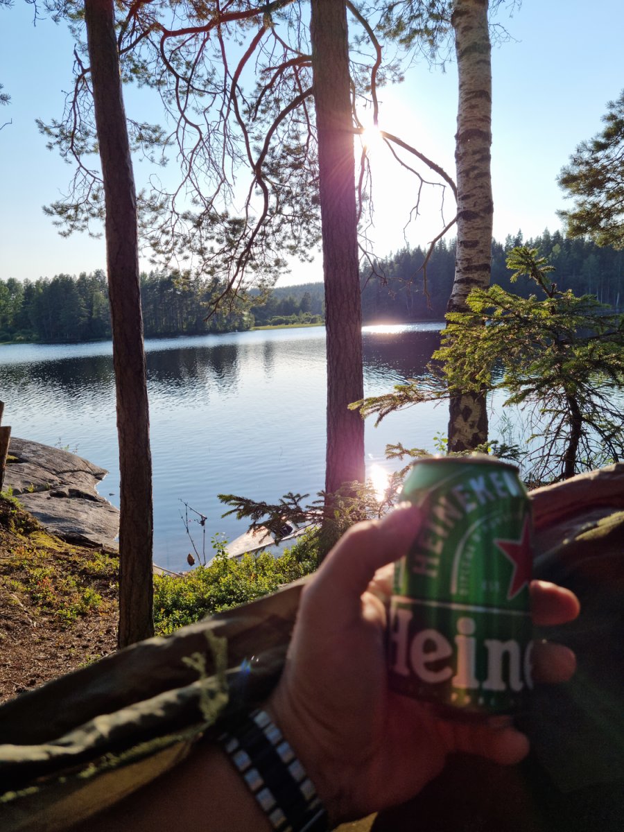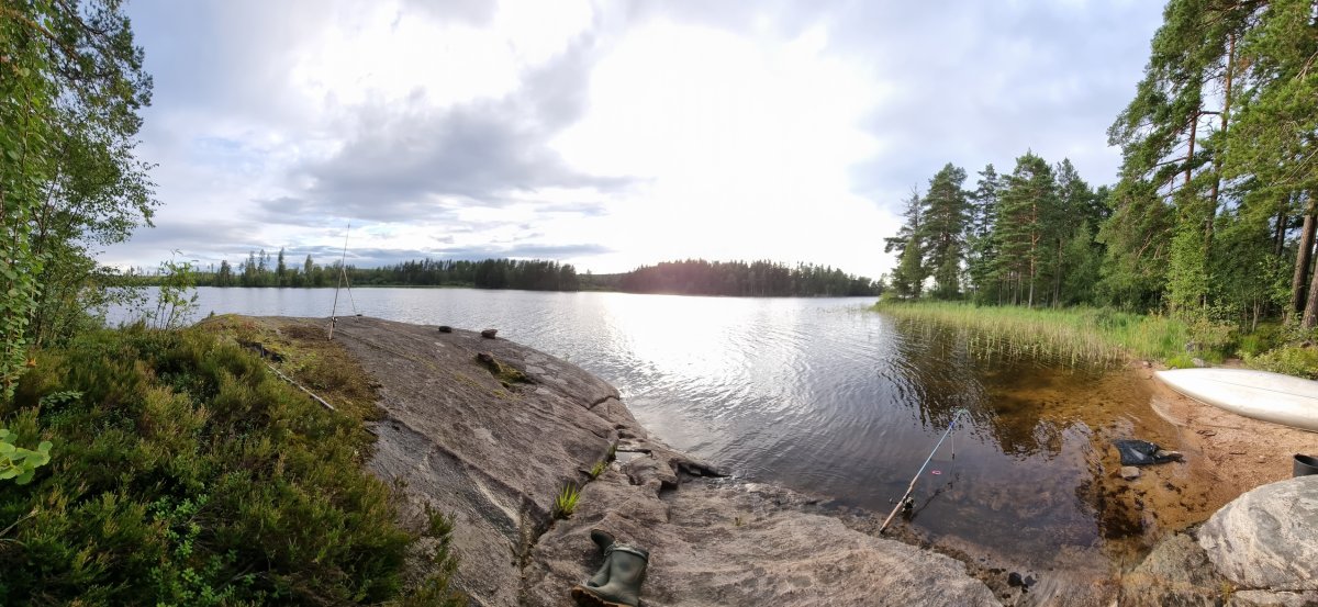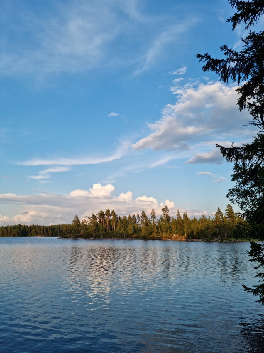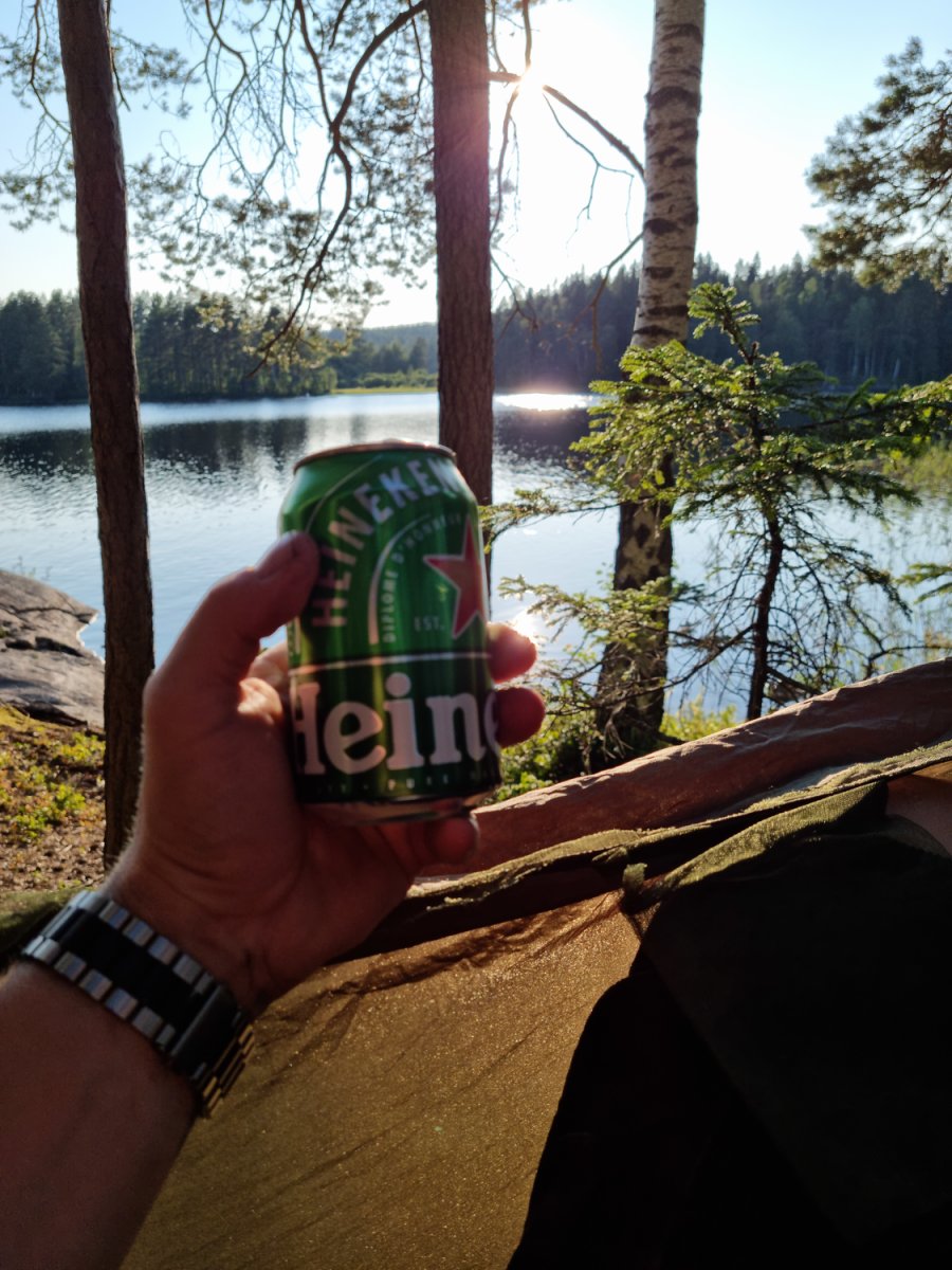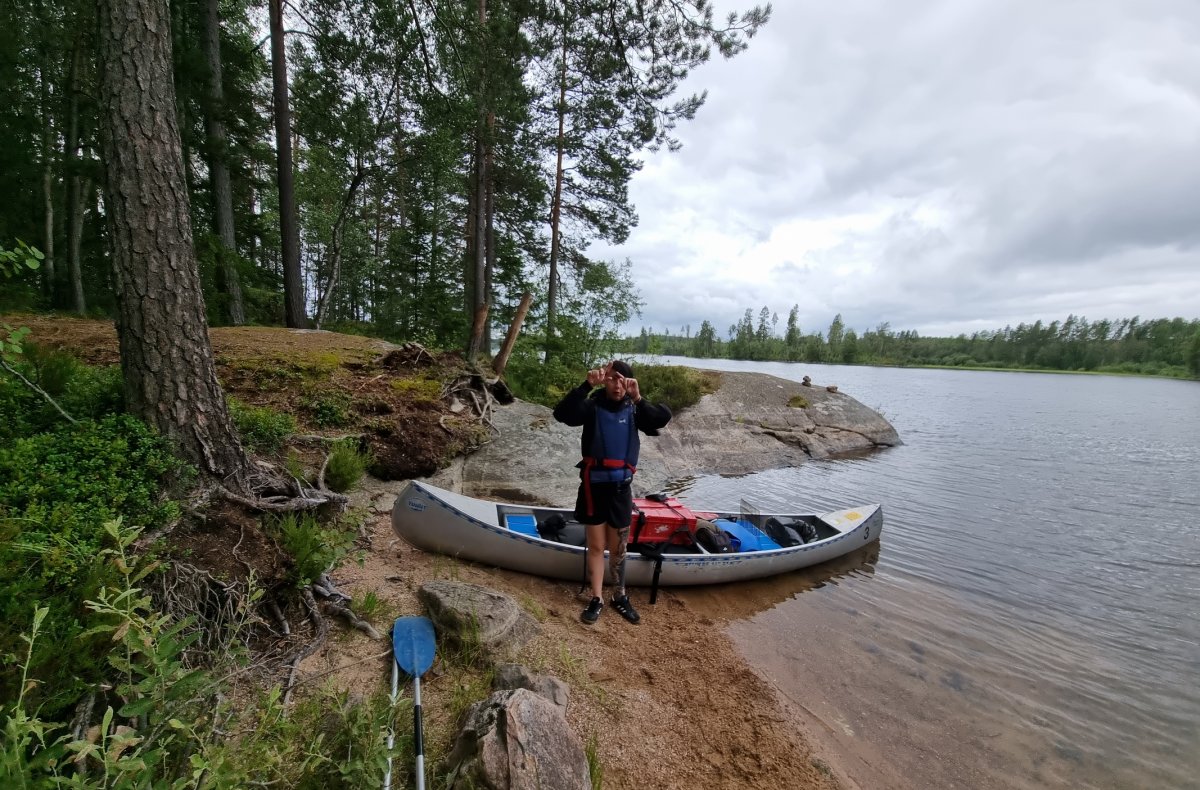 Bevor wir ein Camp weiter bei unseren booten und der Verpflegung angekommen sind.Dort gab es dann durch den sehr freundlichen Mitarbeiter, Ahne...oder Arne er möge es mir verzeihen(nahmen sind wie schall und rauch);) eingewiesen. Mit entsprechenden guten und auch hilfreichen Tips versehenden kontrollierten wie ob alles gebuchte da und beisammen ist.+das Boot richtig beladen sollte auch wirklich beachtet und zugehört werden;)sonst könnte es ein kurzer tipp werden;)Nach ca.ner stunde ist man dann aber mit allem durch und man kann auf seiner karte gucken welch feine Insel man ansteuern darf....wünsche sind kurzfristig auch möglich wenn was oder die Wunschinsel frei ist,wenn man lieb fragt;)Besser ist aber immer sich die Nummer zu merken und beim nächsten mal mit an zu geben,was wir zumindest machen werden um unsere rosa klobrille zu bekommen;)Mehr dazu später...;)wir spartrn uns zumindest gut 3km offenen See mit ziemlich beladenen Boot,was nicht sooo ganz einfach zu steuern ist bei Wind usw...zumindest das erste mal;)Auf unserer Insel angekommen,wussten wir vom vorjahr(inselbesuch )wo wir das Zelt und wo wir die planen ausspannen sollten,Ja richtig planen denn eine bekommt man von skantreck,und aus Erfahrung brachten wir noch eine mit.Denn wenn es regnet ist es oft dieser Regen der in bindfäden runter kommt,und da hatten wir ha auch gewisse Erfahrungen gemacht im Vorjahr trotz tippi.