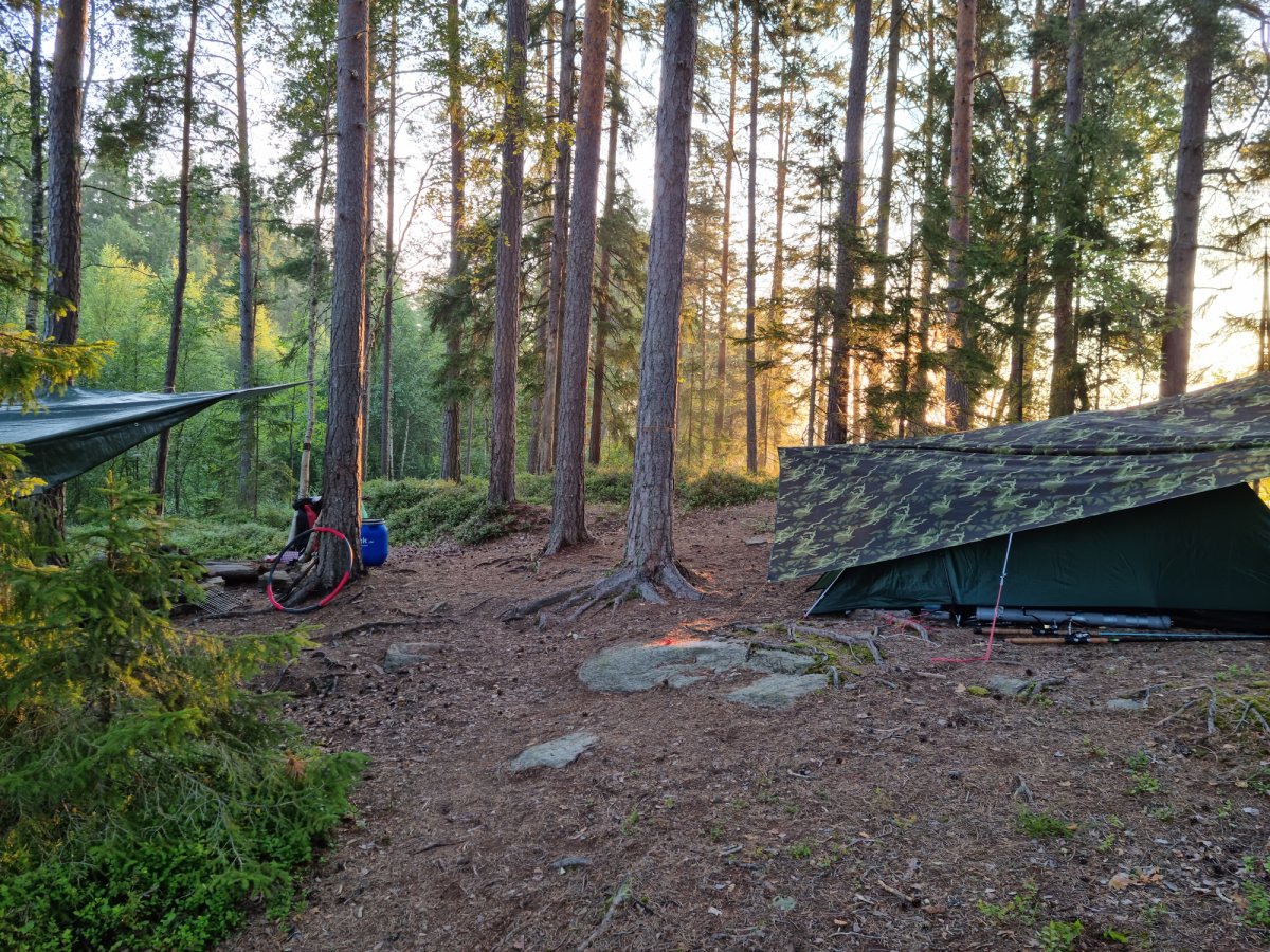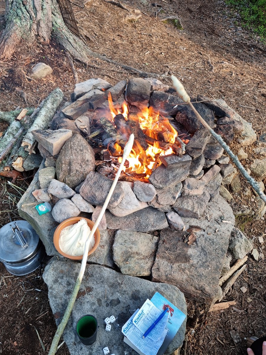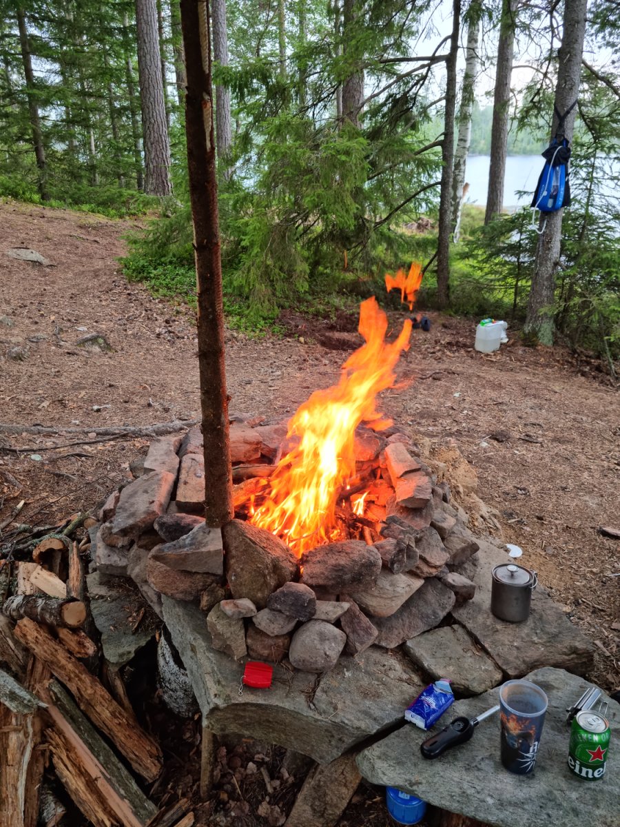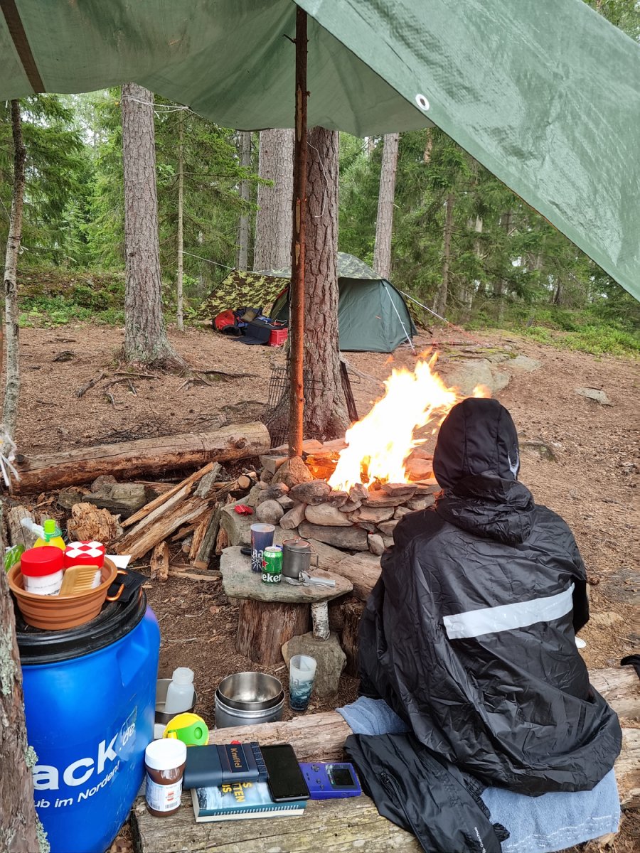 Wir spannten eine gut straff über die Feuerstelle,möglichst nicht in den Wind und eine über das zelt(wetterseite beachten).Es sollte, oder besser ...es hat sich auf jeden Fall bewehrt;)!!!Denn nach 2 Tagen sehr guten Wetter und un der Hängematte abhäng Wetter kamen 3tage wirklicher Regen auf uns zu,was uns aber kaum störte da ziemlich gut gerüstet nur feuerholz hätten wir mehr sammeln sollen ;)(davor)So mussten wir die regenpausen dafür nutzen,und uchbmusste das angeln dann dafür etwas vernachlässigen;)Aber auch das passte,denn Angelerfolg ist da in stora bör auf jeden Fall gegeben!!!Selbst als Anfänger sind 70-80cm Hecht dort kein Problem,wie ich im Vorjahr schon mitbekommen hab,da ich da recht schlecht ausgerüstet war und aufhören musste ,da ich den ganzenfisch nicht mehr verwerten konnte und den letzten großen Hecht mit ner möve teilte;)Dieses Jahr ist mir leider ein sehr großer über 1m ,beim drillen bzw nicht ausdrillen am Ufer durch meinen Fehler abgerissen...18kg stahlvorfach einfach in der Mitte gerissen bei so viel Power da nicht müde gekämpft dann auch kein Wunder bei der größer...ich war halt zu gierig und wollte so einen Fisch mal schnell landen;)egal war dann mein letzter angeltag ,denn danach ist man eh erstmal satt,und jeder andere wäre dann eh zu klein...Wollte damit nur sagen ,selbst als leihe ist man da oben gut im spiel wenn man mal schön Angeln möchte...ansonsten gibt es so viel zuschreiben das es jeglichen ramen hier sprengen würde,aber es lohnt selbst bei Dauerregen und Wind, da man immer zu tun hat sich da so bequem wie möglich auf seinen stückchen Land durch zu bekommen....der Nachthemden verdient dieses Wort da such da keinerlei Abstrahlung der Umgebung...Sonnenaufgang und Untergang ist immer einabsolutes Erlebnis!!!Selbst wenn abends die super Nebel unwetter Wand auf einen zu kommt sieht das aus wie im geilsten Film...Weiß nicht wie das mit den Fotos hier gehandhabt wird,aber wer die sieht weiß was ich meine...Kurz zu klo...jeder Insel hat ihr eigenes ..bei uns plumsklo genannt...wir hatten eines mit rosa klobrille und den besten Naturblick den ich bisher so sah....zumindest morgens...Verabschiede mich solangsam ,es gäbe noch soviel schönes zu schreiben,aber jeder sollte so seine erfahrungen machen.Ich für mich wede sie zumindest 1mal jährlich dort wiederholen denn es ist immer was neues dabei oder was schöneres mit inbegriffen!Vielen Dank auch ans tolle Team dort vor Ort die sich wirklich kümmern und alles top Managen....und Daunen hoch auch an Arne wenn der Name stimmt;)...lach...aber mit Namen hab ichs wirklich nicht so...