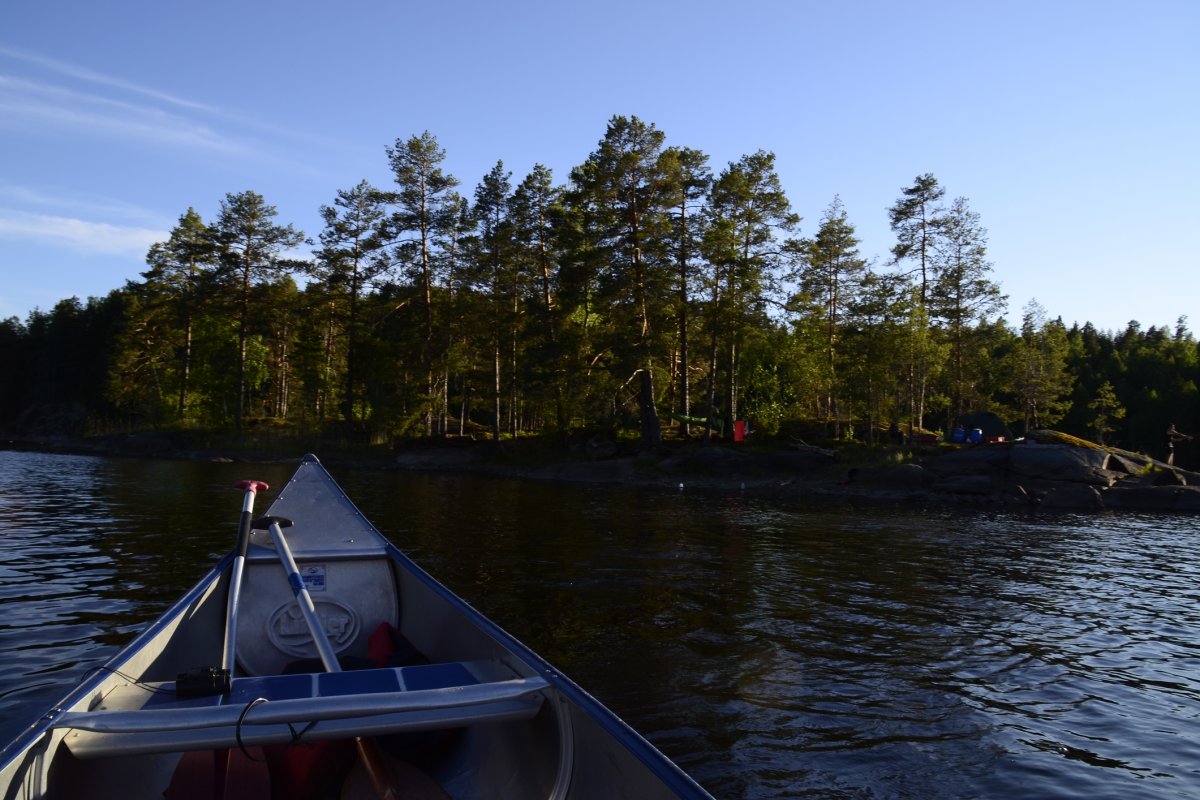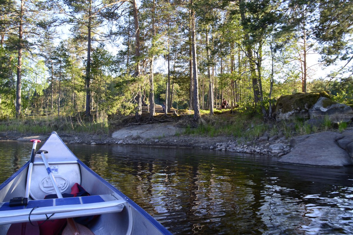 Am Montag, unserem dritten Tag in Schweden sind wir ziemlich lange auf der Insel des Vortages geblieben und machten uns erst gegen halb vier auf den Weg zurück. Unser Ziel war Camp 12. Dieses erreichten wir am Abend etwa um halb sieben. Wir richteten unsere Schlafplätze her und haben noch gevespert. Wir gingen dann jedoch früh ins Bett, da unser drei Stunden Kanusprint Kräfte raubte.