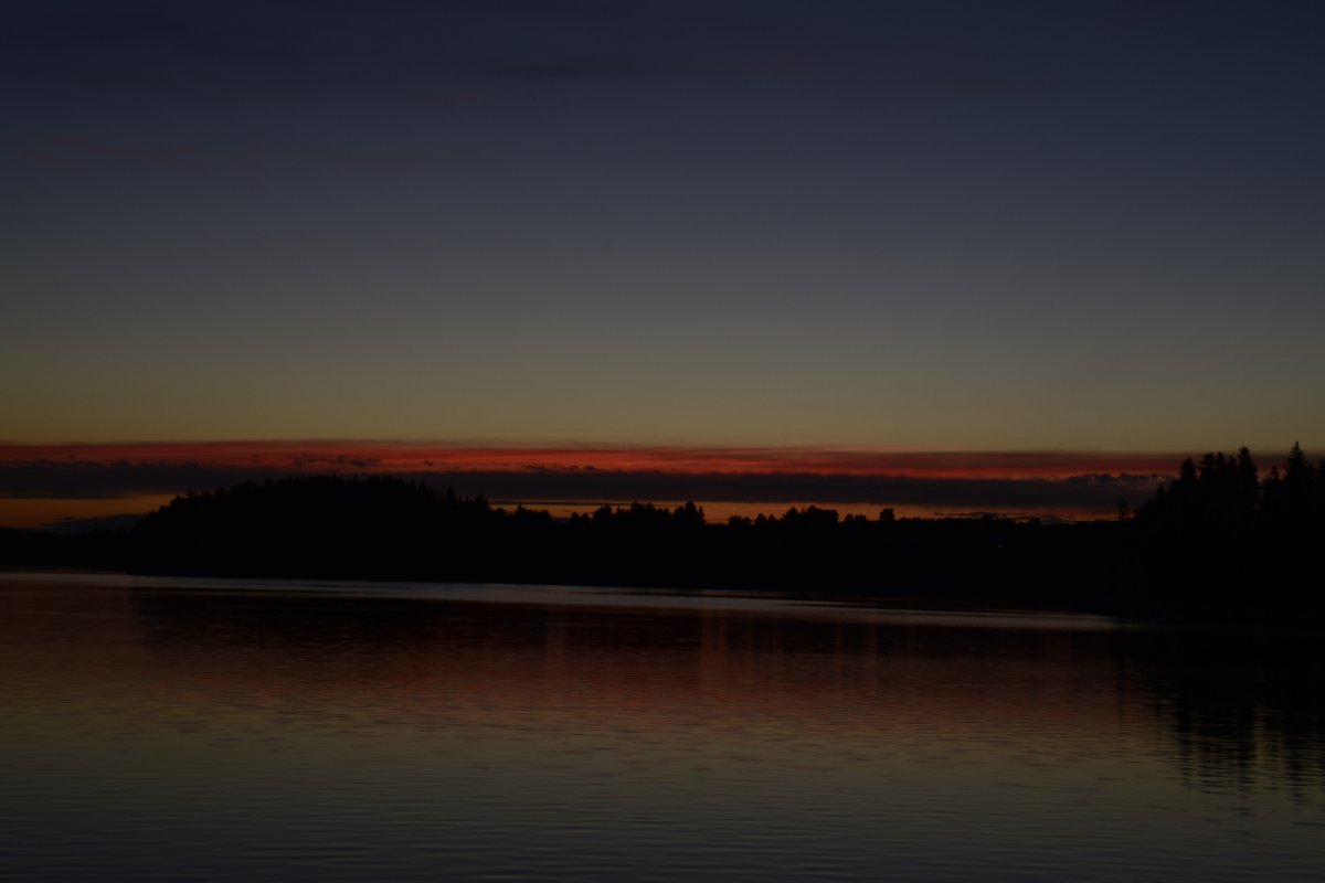 Nach diesem Erfolgserlebnis machten wir uns weiter auf den Weg in Richtung Norden. Unser eigentliches Übernachtungsziel war Camp 41, aber dieses war, wie bereits viele andere Camps leider besetzt. Somit entschieden wir uns dazu, in der Nähe von Camp 41 zu nächtigen. Zum Abendessen bereiteten wir den zuvor gefangenen Hecht mit Kartoffeln zu. Als wir unser Nachtlager aufgeschlagen hatten, gegessen und gespült hatten, waren wir überwältigt, wie lange es nachts hell blieb. Wir hatten uns in Deutschland zwar schon angeschaut, dass die Sonne erst gegen 22:30 – 23 Uhr untergeht, hatten aber nicht damit gerechnet, dass es eigentlich nicht wirklich dunkel wird.