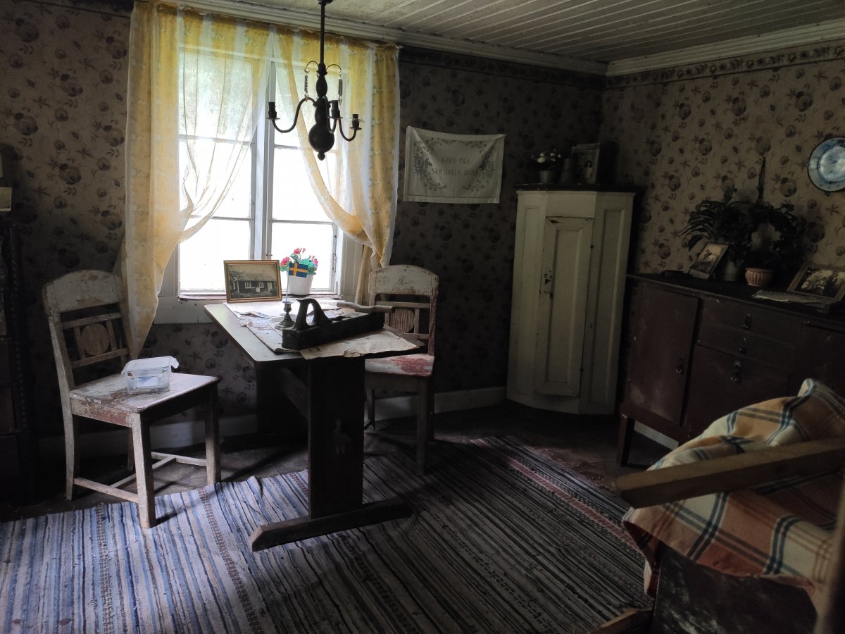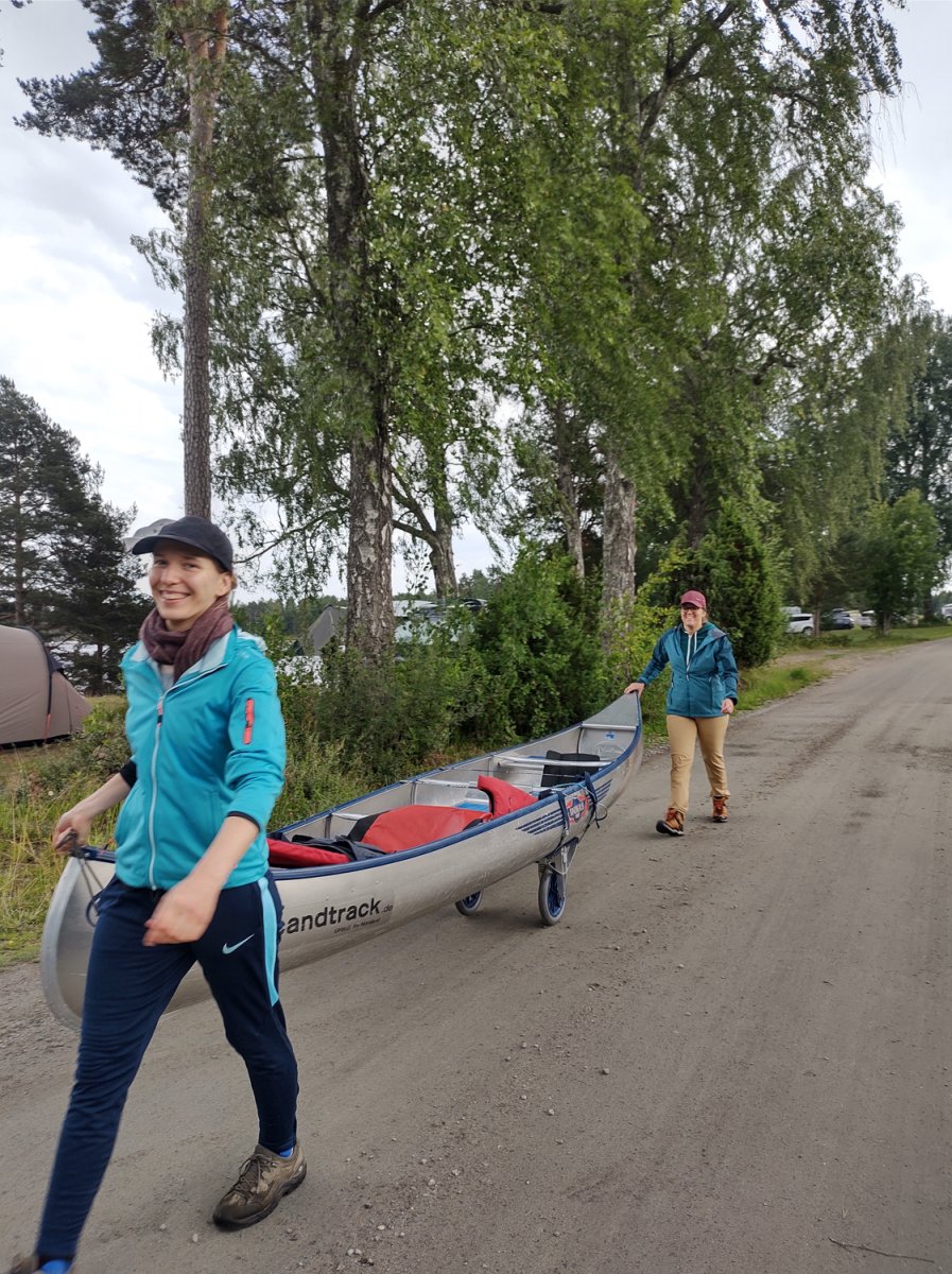 Der letzte Tag bringt noch einige ganz neue Eindrücke. Nachdem wir unser Ferienhäuschen und Kanu schweren Herzens abgegeben haben, geht es zu Fuß zu Gittas Verkstad. Gitta lebt mit ihrem Mann in Lennartsfors auf einem wunderschönen Hof. In ihrem Atelier webt sie, näht, stellt Schmuck und noch viele weitere kleinere und größere Kunstwerke her. Es gibt viel zu bestaunen. Bei einer ofenfrischen Zimtschnecke, Kaffee und Tee haben wir ein spannendes Gespräch über ihr Handwerk, ihren Lebensweg und das Leben in Schweden. Eine Kirche in der Nähe wird auch noch bestaunt, und dann geht es schon zurück ins Scandtrack Camp.