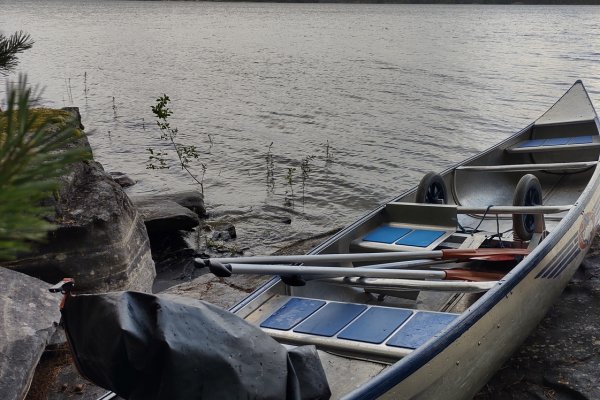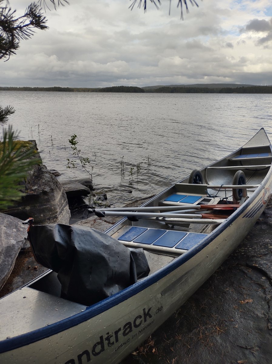 Dann wird die Straße zum Sträßchen, und schließlich zur Schotterpiste. Wir sind da, mehrere andere Busse und der Regen auch. Das Scandtrack Basiscamp ist von Wald umrahmt und begrüßt den erschöpften Reisenden mit Kaffee, Keksen und netten Mitarbeitern. Nach etwas Wartezeit – es müssen schließlich eine Menge Leute mit ihrer Ausrüstung, ihrem Ferienhäuschen oder ihrer Weiterfahrt versorgt werden – haben wir den Schlüssel für unser Häuschen in der Hand. Ferienhäuschen am Foxen nennt es sich. Und tatsächlich, das Häuschen liegt nur wenige Meter vom Seeufer entfernt. In der gemütlichen kleinen Hütte, die mit einer Terrasse mit Seeblick ausgestattet ist, stehen bereits unsere Ausrüstungspakete und die Provianttonnen bereit. Ganz oben drauf: drei Kohlköpfe. Zum Glück sind noch jede Menge andere Sachen in den Tonnen. Nachdem wir uns eingerichtet haben, geht es gleich los in den Wald. Der Wald ist so schön und voll mit Blaubeeren, dass der Regen gar nichts mehr ausmacht. Abends holen wir noch unser Kanu und eine Kanueinweisung ab. Wir sind gerüstet voller Vorfreude für die Woche, die vor uns liegt.