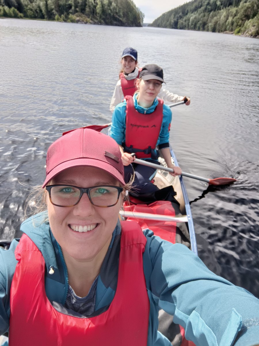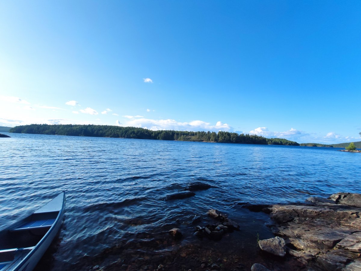 Tag zwei ist noch etwas regnerisch, daher planen wir nicht direkt eine große Kanutour ein. Ein kurzer Spaziergang zum Wald, schon haben wir Schüsseln voller Heidelbeeren und Himbeeren für das Frühstück gesammelt. Dann geht es am See entlang nach Lennartsfors, um ein Café zu finden, in dem es Zimtschnecken gibt. Am Abend können wir sogar schon unsere erste Runde mit dem Kanu drehen und sind sofort angefixt. Es macht richtig Spaß, über den See zu paddeln und die Landschaft am Ufer zu bewundern.