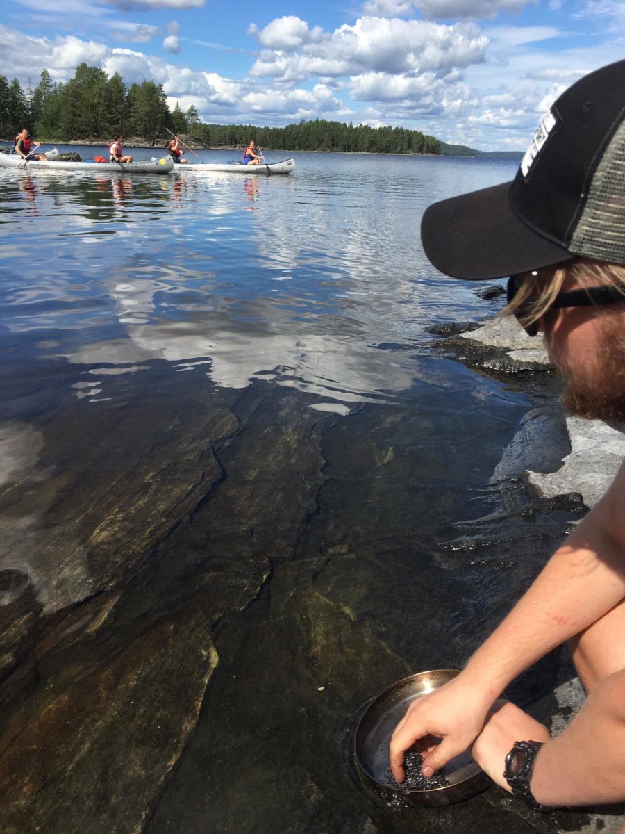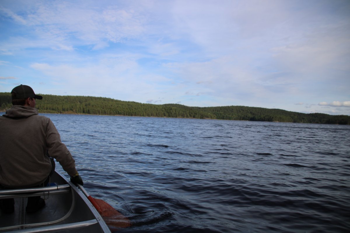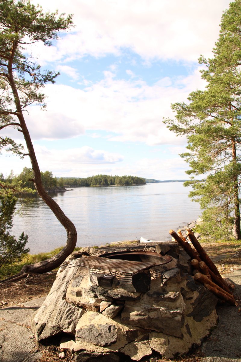 Am vierten Tag haben wir morgens Heidelbeer-Pfannkuchen gemacht. Und ich muss sagen, obwohl ich kein großer Beeren-Fan bin, muss jeder der mal in Schweden ist und Heidelbeere findet, diese Pfannkuchen probieren. An diesem Tag sollte es zum Dano 19 gehen, doch der Weg zu diesem war eigentlich kein Problem wenn wir nicht einmal quer über den Foxensee müssten und wir im Zick-Zack fahren müssen, damit die Wellen nicht unser Kanu umschmeißen. Als wir dann am Dano 19 angekommen sind, mussten wir feststellen, dass dies mal wieder belegt war. Nun war eine wichtige Entscheidung zutreffen, fahren wir noch weiter oder bleiben wir hier? Das nächste Dano war nämlich noch eine Ecke mit dem Kanu entfernt. Wir haben uns dafür entschieden weiter zufahren. Auf dem Weg zu den nächsten Danos, lag eine Umtragestelle. Das heißt, Kanu aufs Land und ausladen, da wir uns keinen Kanuwagen mitgenommen haben, weil diese Umtragestelle relativ kurz war. Wir mussten also alles einmal einen kleine Hügel hochtragen über einen Waldweg rüber und den Hügel wieder runter. Nachdem alles wieder im Kanu war, konnte es weitergehen. Für diesen Tag hatten wir uns kein bestimmtes Dano ausgesucht, da in der einen Mündung des Foxen sechs Danos keine zwei Kilometer voneinander entfernt lagen. Aber diese waren mal wieder alle belegt und wir sind mal wieder weiter gefahren und hofften, dass das letzte Dano in dieser Mündung nicht belegt war. Es war frei, doch war das eins der Danos ohne Hütte aber mit Feuerstelle. Wir schlugen also unser Zelt auf und kochten uns was Leckeres zu essen.