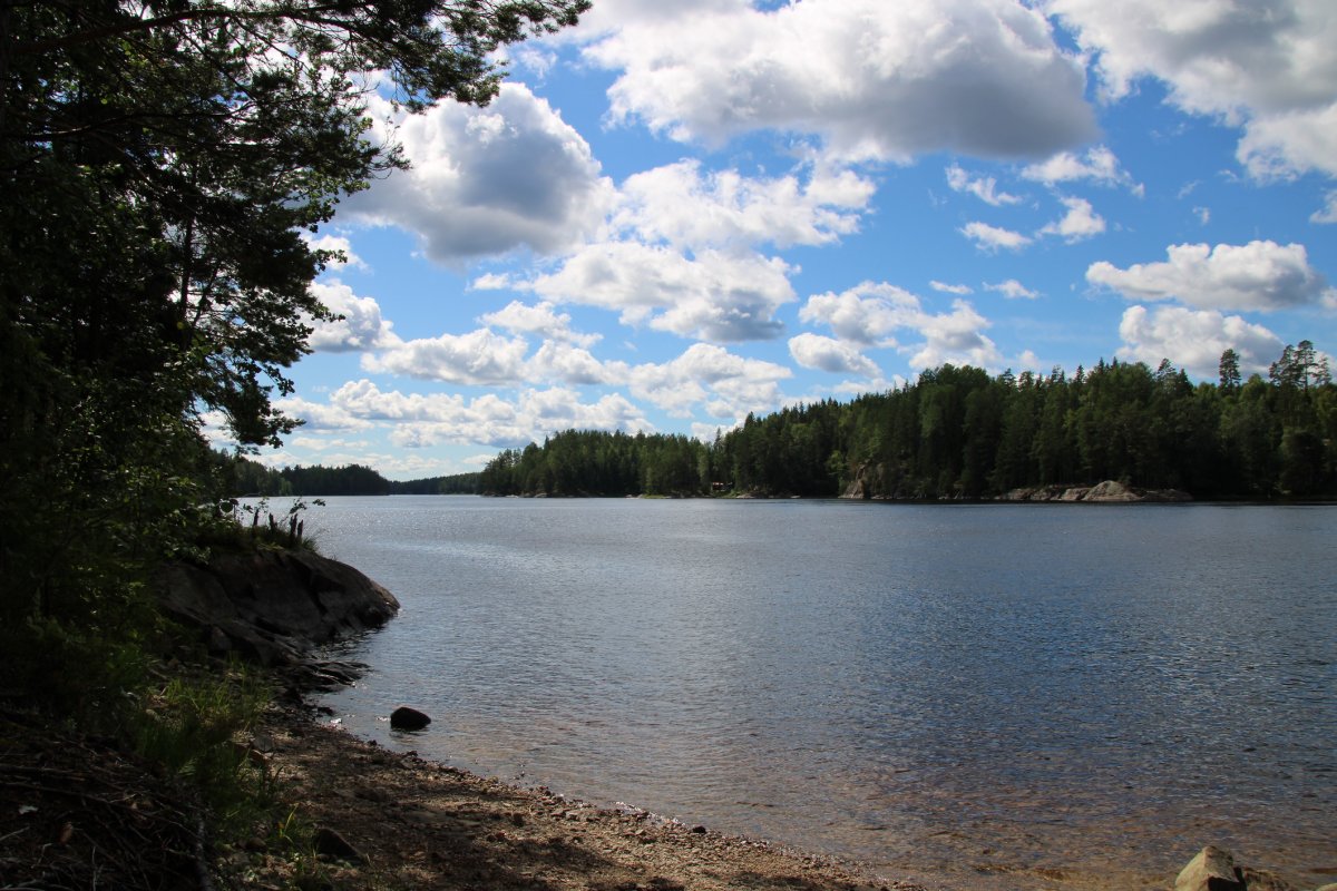 Am zweiten Tag wollten wir zum Dano 18. An diesem Tag sollte es ein wenig regnen, trotzdem machten wir uns auf dem Weg zum Dano 18. Tja sollte wohl aber nicht so sein wie wir es uns gedacht hatten. Da das Dano 18 bereits belegt war. Wir sind also von Dano 18 zum Dano 17 gepaddelt. Tja das war aber auch belegt und zu allem Überfluss waren wir komplett durchnässt, da aus dem leichten Regen ein Dauerregen geworden ist. Wir schlugen unser Zelt und unser Tarp also auf der Insel mit dem Dano 17 auf. Zum Glück hatte es aufgehört zu regnen und wir konnten alles im Trockenen ausladen und aufbauen. Was wir erst bemerkten als wir die Insel besser erkundet haben war das überall Wild-Heidelbeeren wuchsen. Natürlich haben wir einen Becher voll mit Heidelbeeren gepflückt und mitgenommen.