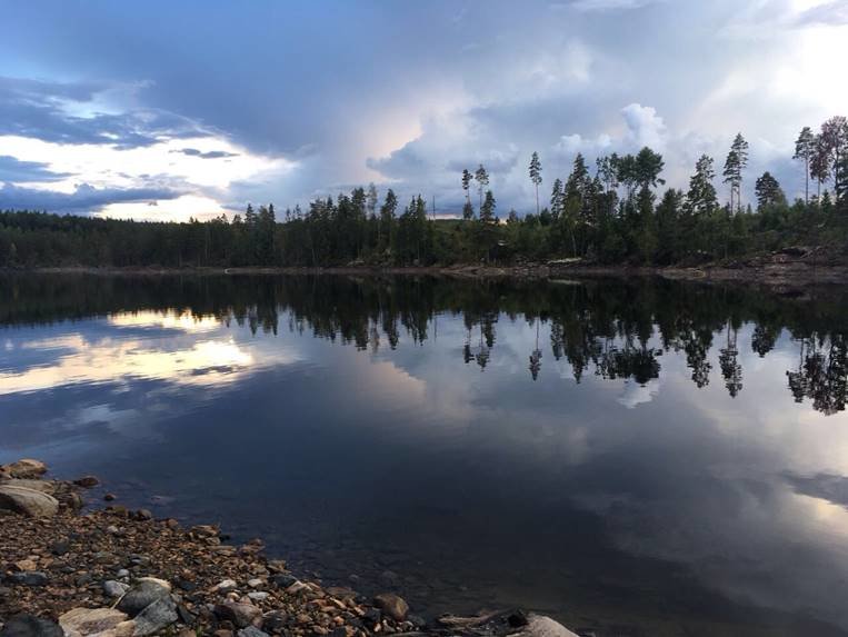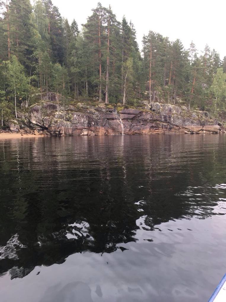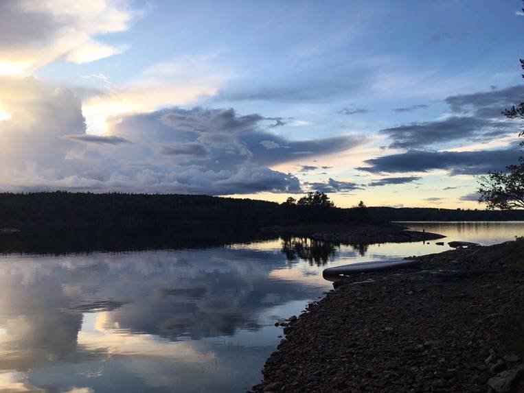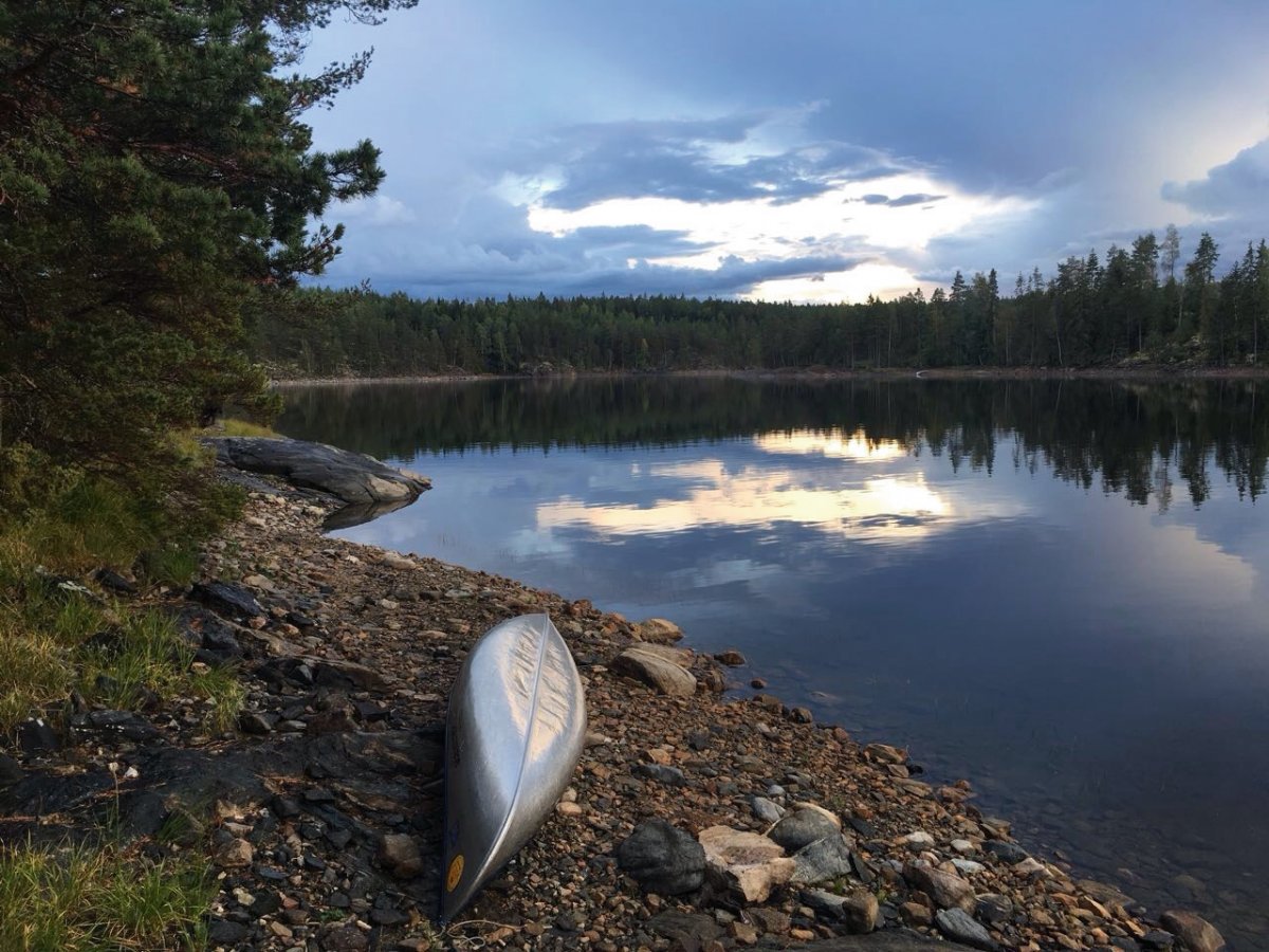 Scheinbar waren wir die ersten die sich auf den Weg gemacht hatten, alle anderen schienen noch am Ufer oder in ihren Zelten zu sein. Erst nachdem wir die letzten zwei Kilometer bewältigten sahen wir dass wir nicht die einzigen waren. Langsam ließen wir das Kanu auslaufen, wir waren an unserem Anfangspunkt in Lennarsfors angekommen. Zwei bis drei weitere Kanufahrer waren ebenfalls schon da und waren dabei ihre Sachen nach oben zu tragen oder das Kanu sauber zu machen. So waren auch wir bereit. Angekommen säuberten wir unser Kanu, gaben dieses ab und trugen unsere Sahen wieder den Berg hoch. Wir konnten unsere Sachen sofort umpacken und mussten nicht mehr viel machen. Wir säuberten noch ein Mal die Töpfe und brachten dann unsere ausgeliehen Gegenstände zurück.