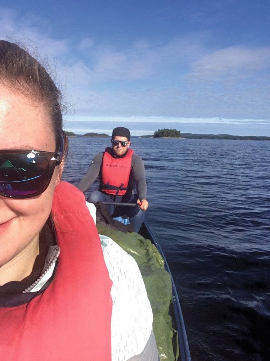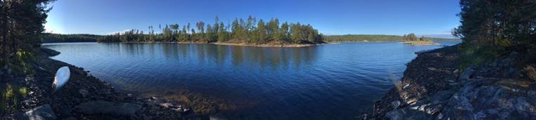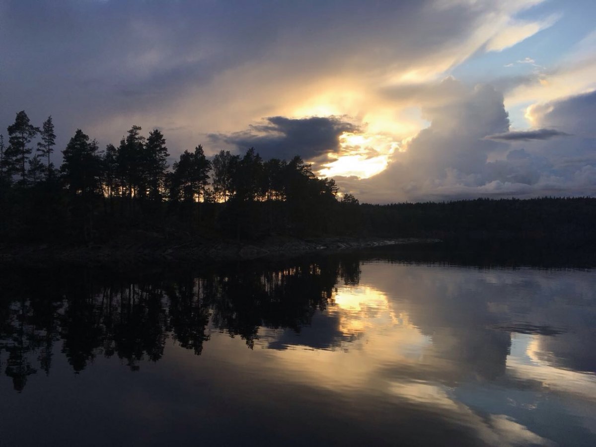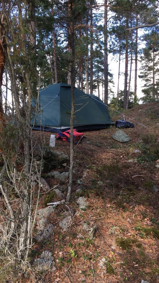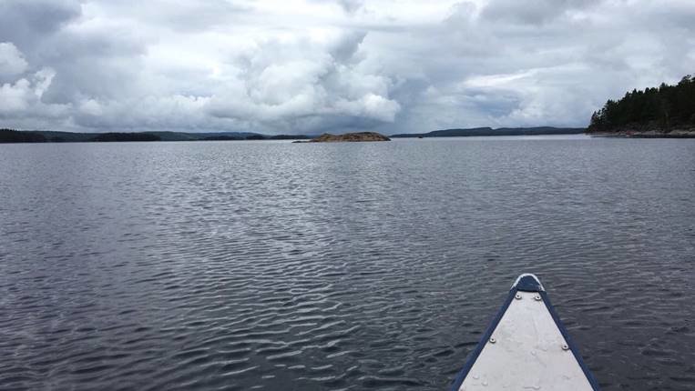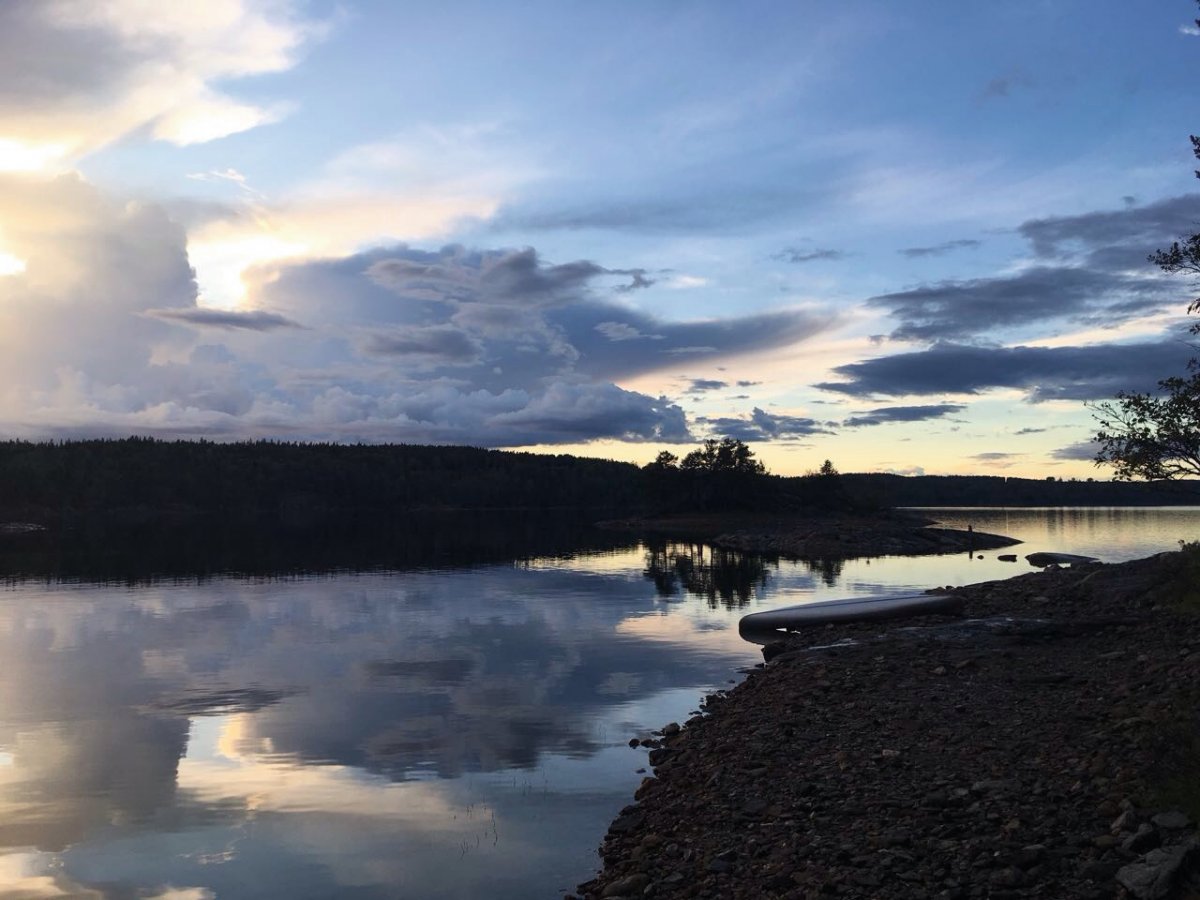 Es war langsam Mittag und wir mussten uns Gedanken machen wo wir die letzte Nacht übernachten wollten. Wieder am Steg angekommen trafen wir auch andere Kanufahrer mit denen wir uns kurz unterhalten haben. Sie sagten uns dass unser eigentlicher Plan, auf die Insel mit den vier Danos zu fahren, nicht gut sei. Sie sei gestern schon ziemlich voll gewesen, somit mussten wir spontan einen neuen Plan machen. Wir entschieden uns weiter Richtung Süden zu fahren, nur nicht zu weit, da wir das Wetter nicht unterschätzen wurden. Somit nahmen wir unser Kanu und paddelten weiter, bis wir an der Insel neben Dano 10. Dort waren, wie wir vermuteten, auch schon andere Kanufahrer, dennoch sahen wir einen freien Platz und legten an dem Ufer an. Schnell trugen wir unsere Sachen hoch, bauten unser Zelt auf und stiegen wieder in das Kanu. Es war noch zu früh um bereits etwas zu essen oder am Land zu bleiben somit fuhren wir noch eine Runde um die Inseln, ehe wir uns wieder auf dem Weg „nach Hause“ machten und anfingen Mittagessen zu kochen.