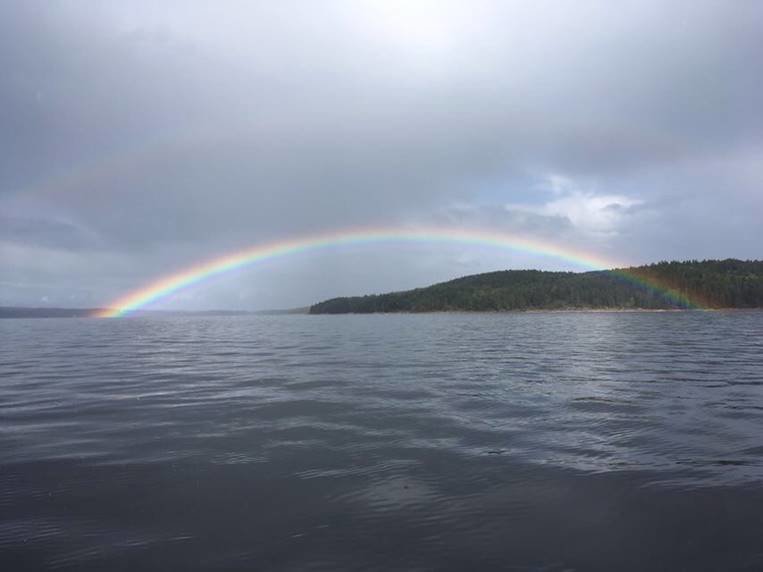 Es war ziemlich lecker und nur langsam packten wir wieder unsere Sachen zusammen. Es ging wieder raus, wir mussten wieder aufs Wasser, da wir eigentlich nach Norwegen runter wollten. Hin und wieder regnete es und dies erschwerte es uns, die Sachen zum Ufer zu tragen. Hier war es doch so schön warm und dort draußen ? Kalt … nass …