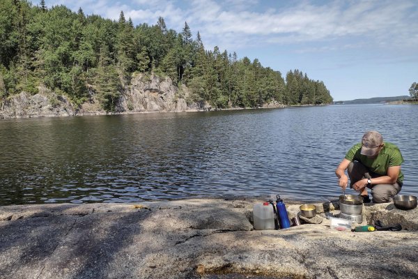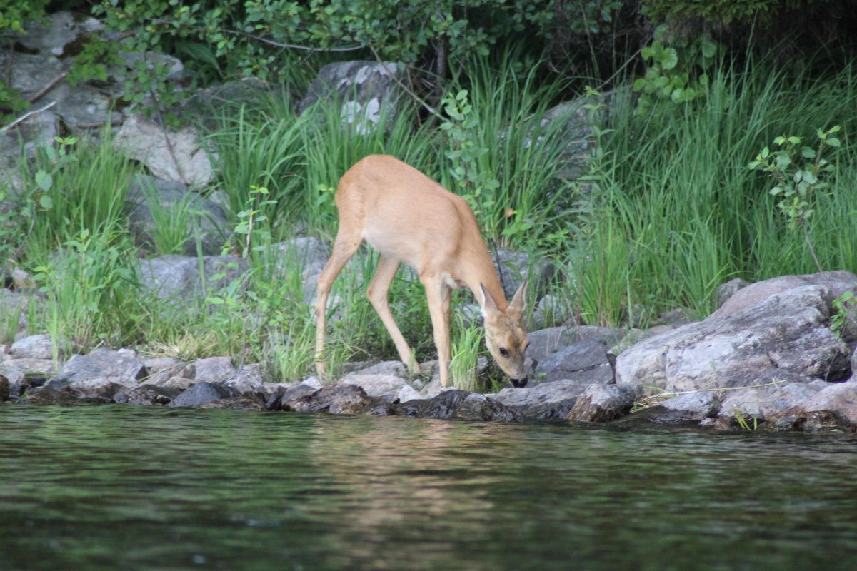 20.07.2021 bei Rauer See ging es heute weiter, wir querten den Stora Le Richtung Norden an unserem zweiten Nachtlager vorbei. Nach wenigen Kilometern durften wir ein Reh beobachten das sich beim grasen nicht stören ließ. Wir hatten beschlossen einen ruhigen Tag zu verbringen, da der letzte Tag uns einiges an Kraft kostete. Kurz vor unserem heutigen Tagesende auf See haben wir noch einen Barsch gefangen, dieser hatte sich aber dann doch noch befreien können. Wir übernachteten unterhalb Dano 7, nach ungefähr 8 km. Am Nachmittag hatten wir eine Wanderung unternommen und Heidelbeeren gefunden, mit denen wir dann Kaiserschmarrn auf schwedisch gemacht hatten.