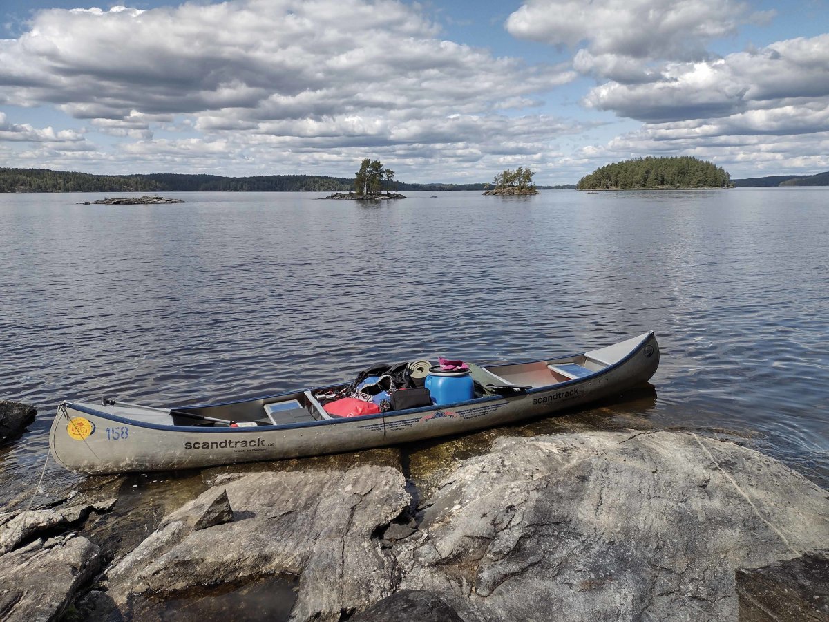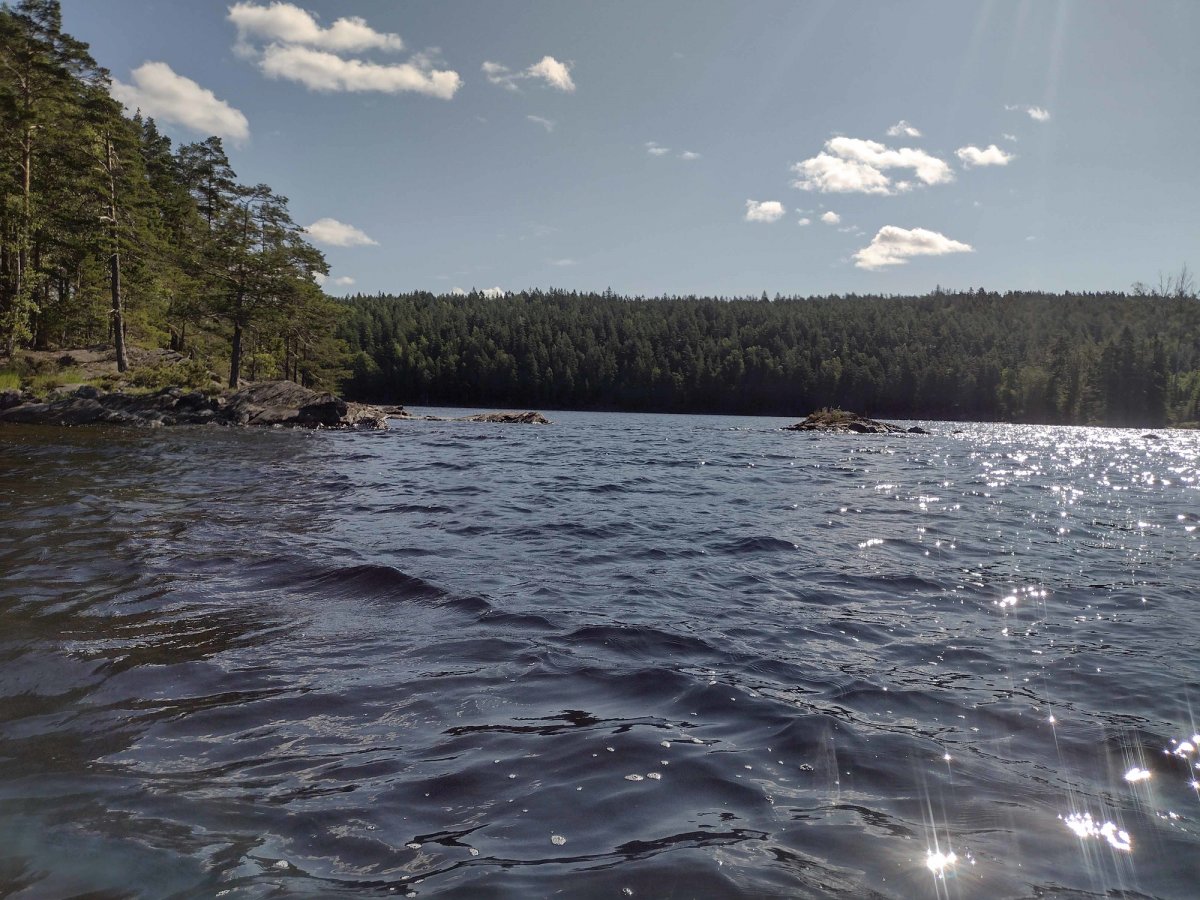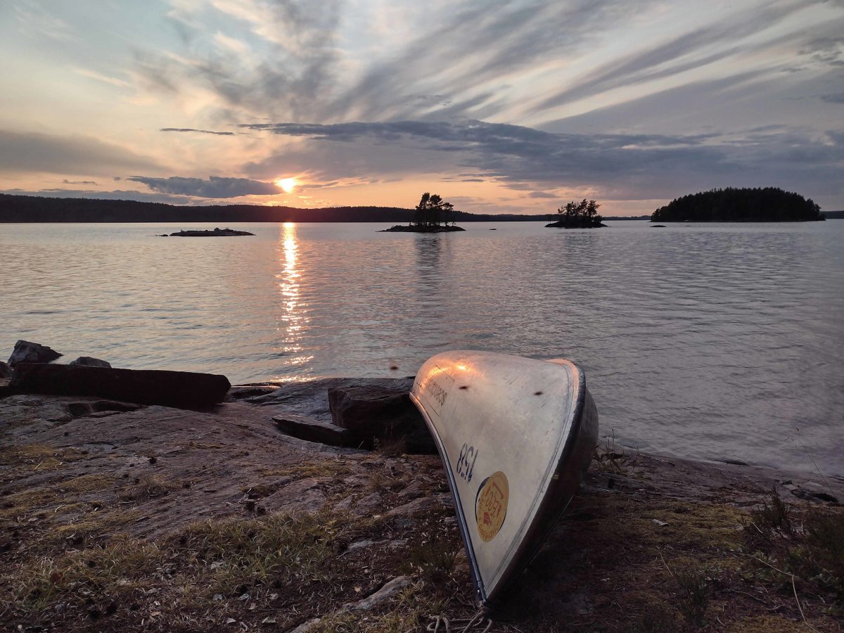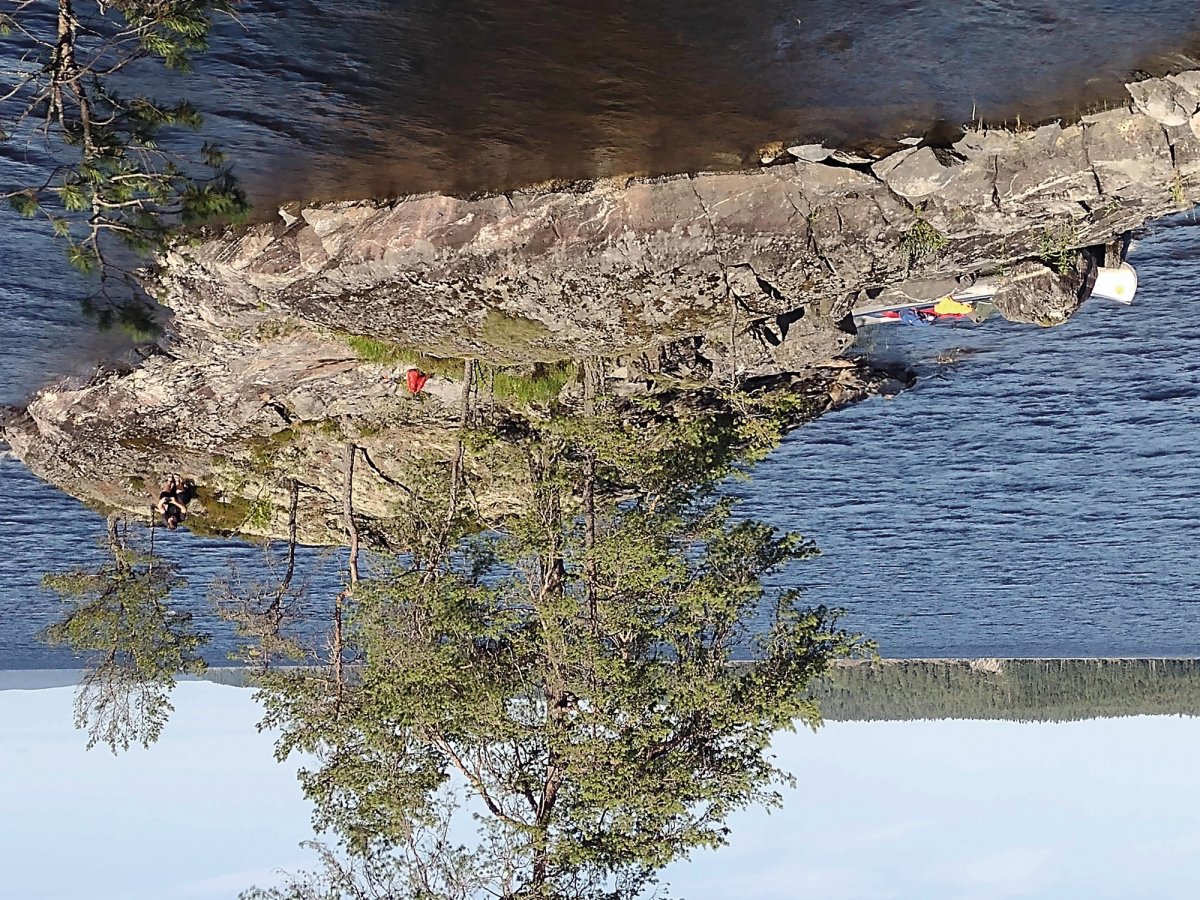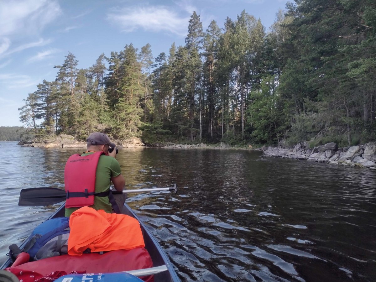 23.07.2021. Wir hatten ein Übernachtungsgast im Kanu: eine Kröte. Bei ruhiger See und purem Sonnenschein geht es Richtung Süden, östlich an der Insel Bärön vorbei, Dano 19 passiert und dann Flötefjörden eingefahren und durchquert. Daraufhin sind wir in den Stora Le eingefahren und haben Dano 41 passiert. Wir haben zwei Barsche auf Höhe Lager 40 gefangen und daraufhin umgedreht in Richtung Foxen. Im Foxen haben wir ungefähr nach einem Kilometer nördlich unser Lager aufgeschlagen. Am Abend sind wir noch auf die die vielen kleinen umliegenden Inseln geschwommen. Insgesamt sind wir heute in Luftlinie ungefähr 21 km gefahren.