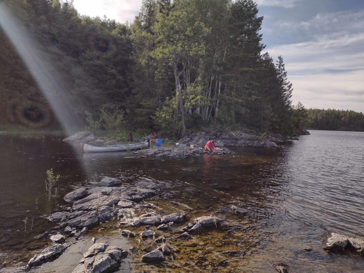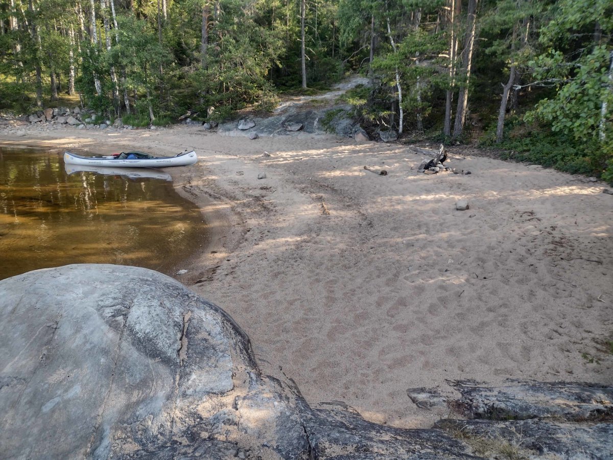 Am 17.07.2021 starteten wir gegen 13:30 Uhr im Camp Lennartsfors. Der Seeweg führte uns an Dano 11 und 10 vorbei. Aufgrund des starken Gegenwindes suchten wir uns gegen 16 Uhr einen schönen Platz gegenüber von Bryntorpson, wo wir nur im Schlafsack übernachteten. An diesem Tag sind wir sind ungefähr 8km gefahren.