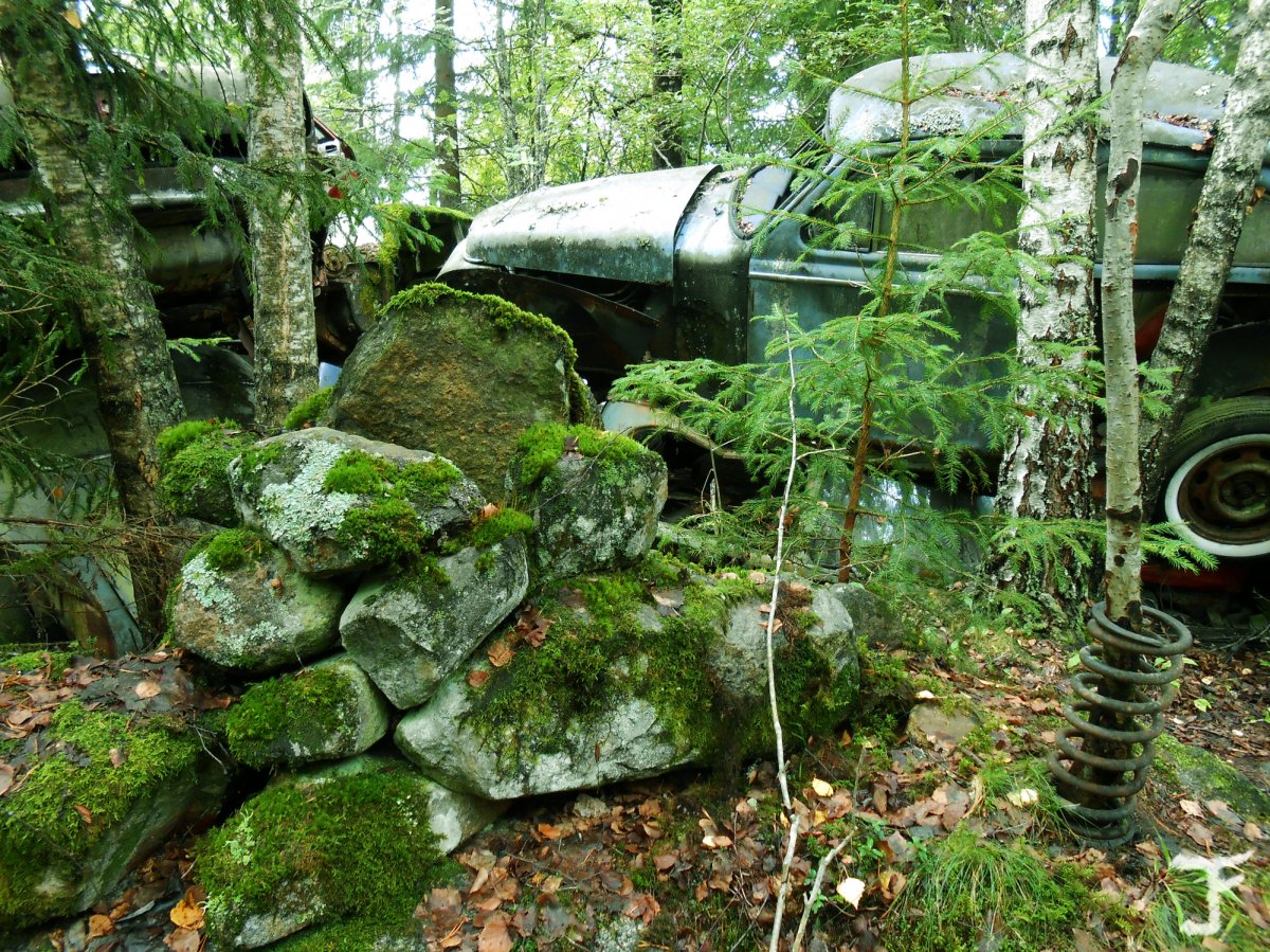 um den Autofriedhof zu besichtigen. Nach 500m lagen bereits erste Auto-Teile im Gebüsch und hinter der nächsten Kurve