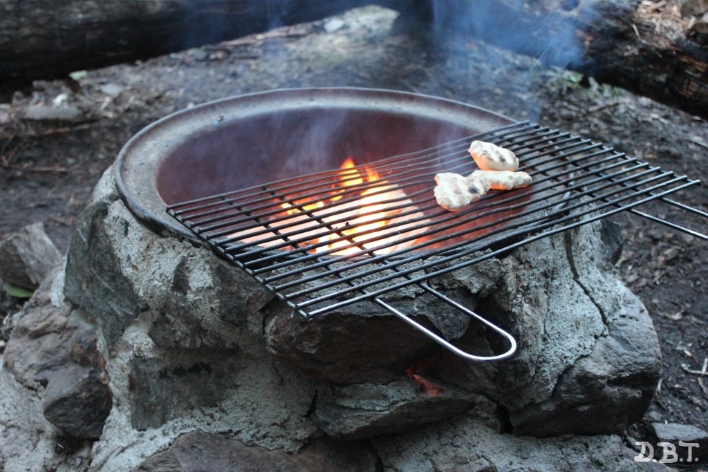 Wir verbrachten einen fröhlichen Abend am Lagerfeuer und verwendeten unser letztes Mehl um Blaubeertaschen zu backen.