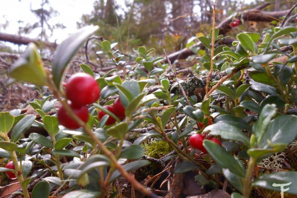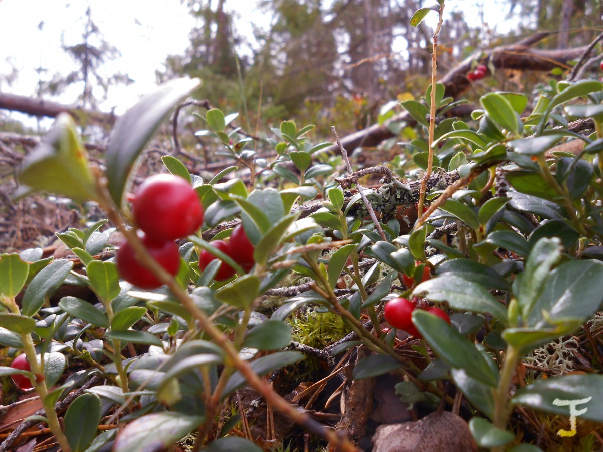 Auf einer kleinen Halbinsel neben der Bucht wuchsen Preiselbeeren wie Blumen auf der Wiese.