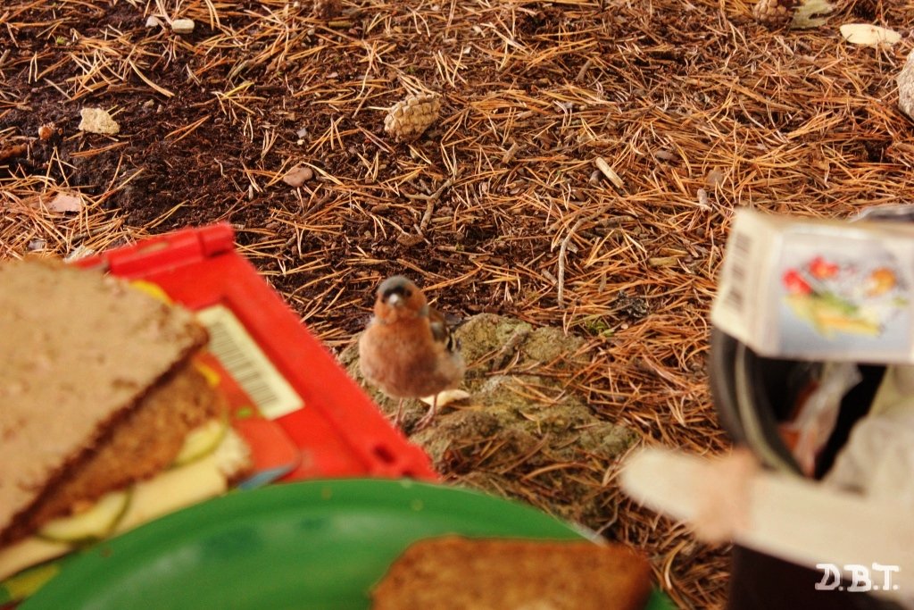 Am Zielort fanden wir nur normalen Wald und einen kleinen Stein-Tisch mit Sitz-Steinen drum herum.