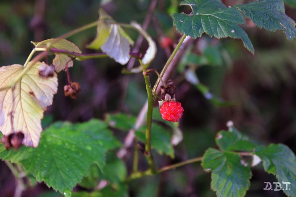 Wir pflückten einen Topf voll, dann rollte ein Gewitter heran und wir zogen uns in die Hütte zurück.