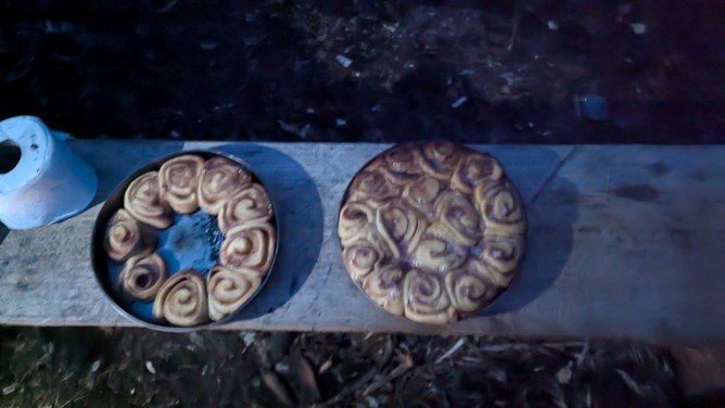 Jeder hatte seine Aufgabe und trug zum Gelingen des Tages bei. Während der Backofen langsam heiß wurde, genossen wir die gemeinsame Zeit und die Ruhe der Natur. Die Stimmung war ausgelassen und voller Vorfreude auf das gemeinsame Backerlebnis. Am Abend versammelten wir uns rund um den selbstgebauten Ofen. Der Duft von frisch gebackener Pizza und warmen Zimtschnecken lag in der Luft.