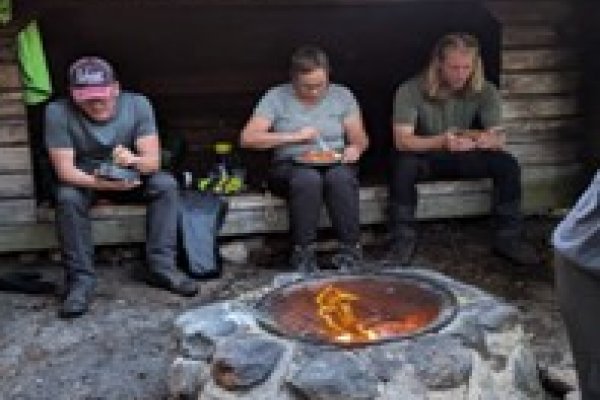 Um die Stimmung zu heben, zauberte Mirko seine legendäre Terence-Hill-Pfanne. Das Gericht war ein voller Erfolg und sorgte für neue Energie. Nach einem langen Tag voller Abenteuer war das Lagerfeuer unser gemütlicher Rückzugsort, an dem wir uns gegenseitig erlebte, lustige und spannende Geschichten erzählten. Nach einem Tag voller Herausforderungen und neuen Eindrücken ließen wir uns abends erschöpft, aber glücklich in unsere Schlafsäcke fallen. Mit einem Lächeln auf den Lippen und einem Gefühl der tiefen Zufriedenheit schlummerten wir ein.