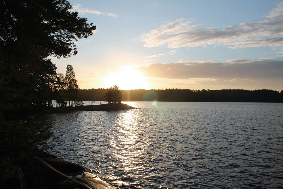 Nach einer wider Erwarten gar nicht allzu anstrengenden Auto-, Bahn und schließlich Busfahrt rückt das Ziel unsere Reise, die weiten Wälder Schwedens zu erkunden, immer näher. Aber zunächst wird noch das ein oder andere Würstchen gegessen, wer weiß, wann es wieder was gibt. Uns Mädels fallen noch beim Beladen der Kanus im Basiscamp sowohl positive als auch negative Aspekte auf: Gut, dass wir die Männer zum Schleppen der schweren Sachen dabei haben; aber schauen wir uns den Inhalt der Essenstonne genauer an, so wird wohl kaum eine Chance bestehen, am Ende der Reise ein Gürtelloch mehr verloren zu haben. Die Männer würden am liebsten direkt ihre Angel ins Wasser werfen. Von daher verlassen wir uns auf den Tipp unsere Route gen Süden zu beginnen, da sich Hechte hier besonders wohlfühlen - da ist das Fangen ja schon vorprogrammiert! Vorher wird jedoch noch eine Palette Bier für den Notfall gekauft. Man weiß ja nie. Direkt zu Beginn jedoch eine kleine Motivationsbremse: die „Sluss“ hat Mittagspause und der „Lockkeeper“ braucht ca. 1 ½ Stunden um die Schleuse wieder zu öffnen. Nun denn, es wird Rast gemacht, Gott sei Dank mit Gitarrengeklimper und noch etwas Sonne, die uns in den nächsten Tagen nicht allzu oft begegnen sollte. Das Schleusen an sich ist schon mal ne Erfahrung wert, besonders wie die Lockkeeperin das Geld eintreibt… Auf der anderen Seite der Schleuse sind wird direkt von der Landschaft geflasht, weit und breit nur blaues (bzw. je nach Wetterlage graues) Seewasser, in das man nur seine Flasche halten muss und dieses eiskalt zu genießen, kleine Buchten und weite Wälder in denen ab und zu ein kleines Schwedenhäuschen aufblitzt.