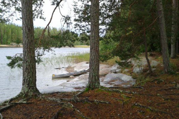 Schweden - Natur pur, das war unser Plan! Totale Entspannung, Ruhe genießen, faul in der Sonne liegen, Spazierengehen, gemütlich angeln, am Lagerfeuer sitzen, Stockbrot oder Pizza backen und beim Paddeln den Kopf freibekommen. Doch ganz so war es nicht ;) Wie groß der Einfluss des Wetters sein kann, haben wir natürlich etwas unterschätzt. Bei Regen auf dem Felsen liegen, ist nun mal doch nicht ganz so entspannt. Und auch Fische haben bei Regen wenig Lust auf einen Köder. Zum Glück war es kein Dauerregen, so konnten wir gut weiterpaddeln. Immer in Bewegung war es auch nicht zu kalt. Außerdem folgt auf Regen ja bekanntlich Sonnenschein, was auch bei uns der Fall war - sogar ziemlich häufig. Regelmäßig wurden wir von sensationellen Regenbögen überrascht und damit für manche Strapazen belohnt. Vor allem die Kulisse aus endlosem Seewasser, traumhaften Inseln und Wald war hierfür perfekt. Langeweile kam nicht auf, denn es gab immer etwas zu tun. Es musste Feuerholz fürs Abendessen und Wasserkochen gehackt, der perfekte Lagerplatz unter zahlreichen Möglichkeiten ausgesucht, das Boot ausgeladen und das Zelt aufgebaut werden. Und anschließend will die Route für den nächsten Tag auch noch geplant werden. Wetterbedingt ging nicht immer alles so schnell wie gedacht. Bei regelmäßigen Regenschauern benötigt das nasse Feuerholz etwas mehr Zuspruch.Meist bewegten wir uns mit dem Kanu in schmäleren Seitenarmen des Sees. Unsere Überfahrt über den großen See hatte Abenteuercharakter. Bei starkem Wind waren die Wellen recht ordentlich und das Vorwärtskommen zudem erschwert. Der direkte Weg war oft nicht möglich, da wir die Wellen schneiden mussten, um nicht komplett durchgeschaukelt zu werden, beziehungsweise um nicht zu kentern.