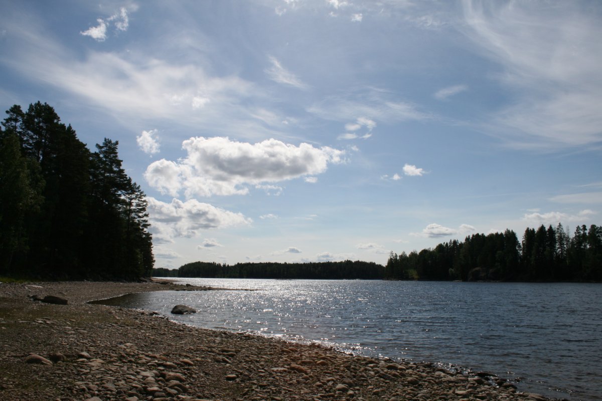 Am frühen Mittag packten wir unser Kanu und machten uns an die Weiterfahrt. Zwar hatten wir die Karte ausgiebig studiert, auch um ausfindig zu machen, wo genau wir uns befanden, ein klares Ziel vor Augen aber hatten wir nicht. Unsere Devise war: Alles kann, nichts muss. Und obwohl wir beide recht unerfahrene Kanufahrer waren, glitt unser Boot schnell und zuverlässig durch den See.