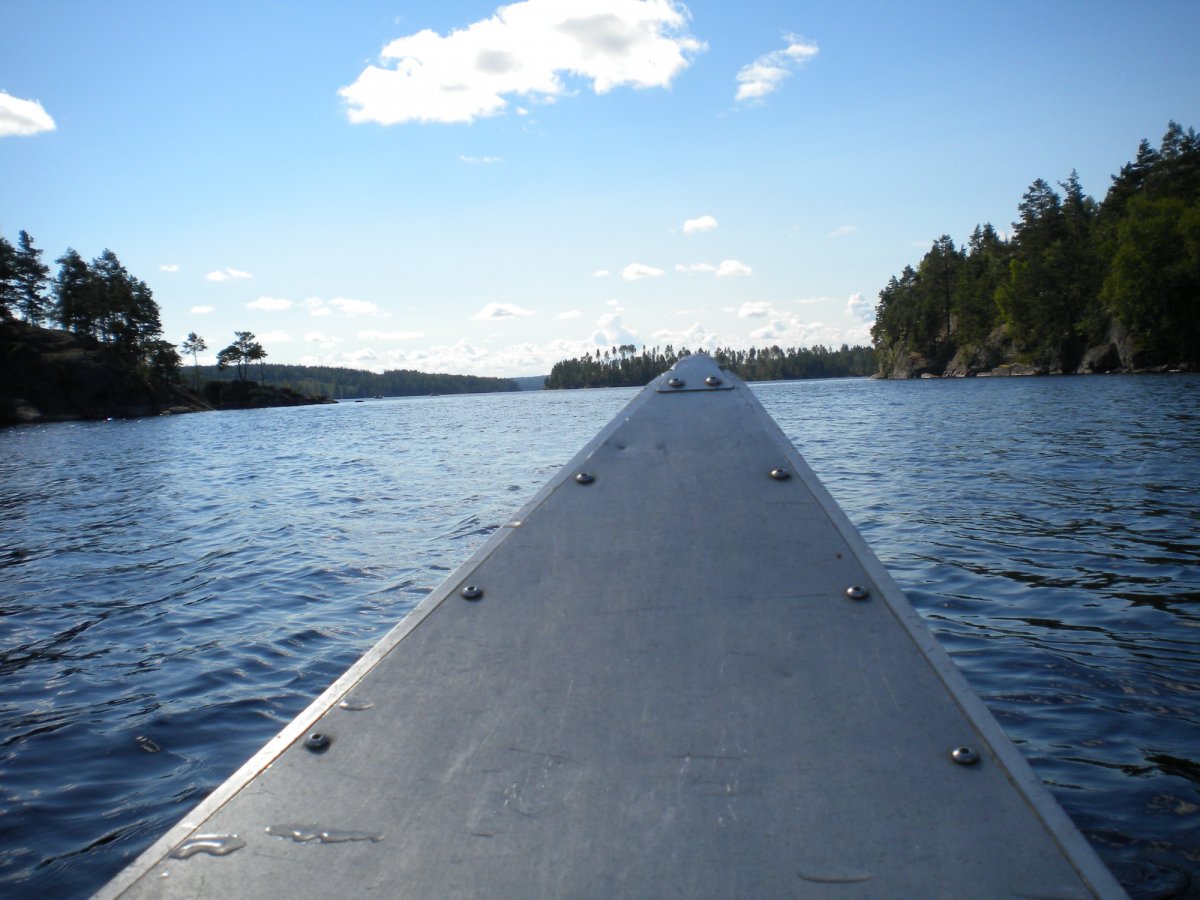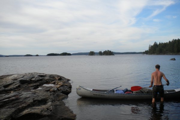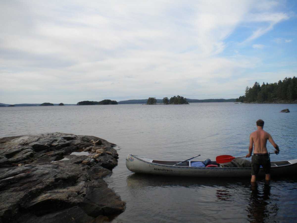 Wir paddelten nur in Badesachen und kurzen Klamotten. Schon nach kurzer Zeit hatten wir beide einen dicken Sonnenbrand. Unsere Tour führte uns heute über den Stora Le, rüber nach Norwegen.