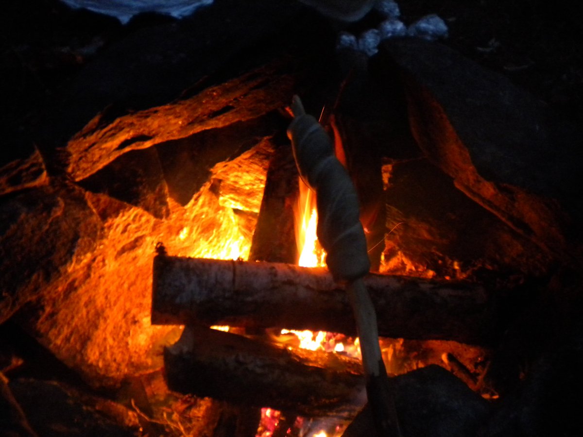 Abends grillten wir dann den Fisch über dem Lagerfeuer. Dazu gab's Folienkartoffeln - und wie wir das aus Kindheitserinnerungen kennen - Stockbrot. :-)
