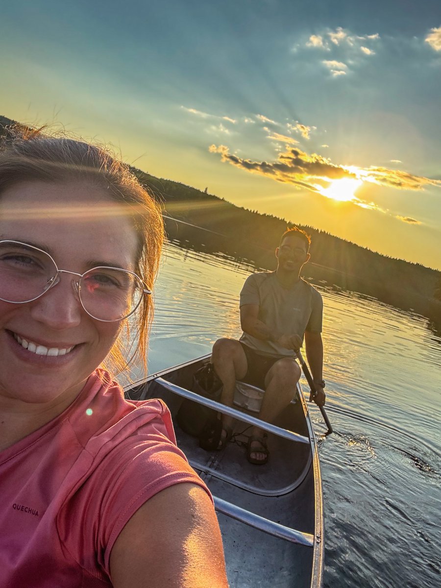 Wir starteten mit einem vollgepackten Kanu – Zelt, Kochausrüstung, Proviant und allem, was man für ein Leben draußen braucht. Schon nach wenigen Paddelschlägen fühlten wir uns frei. Die Weite des Sees, das Glitzern des Wassers und die unberührte Natur ringsum ließen den Alltag schnell in weite Ferne rücken.