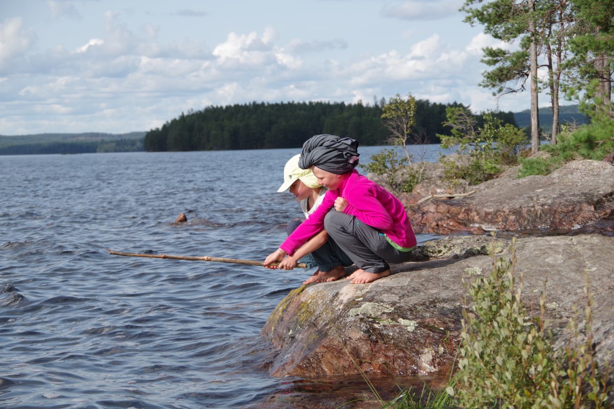An Tag fünf wird geangelt, leider wieder mit keinem Erfolg. Auch unsere Kinder basteln sich eine Angel aus einem Stock, einer gefundenen Angelschnur und Salamiresten, aber auch das lockt die Fische nicht an. Wir sammeln Pilze, mit sehr großem Erfolg und wandern durch die Gegend. So entdecken wir noch viele weitere schöne Plätze und zwar keinen Elch, aber seine Hinterlassenschaften, immerhin. Auch heute scheint wieder die Sonne, wie auch die anderen Tage und wir liegen faul in der Sonne und baden im See und da ja weit und breit niemand zu sehen ist…nackig.