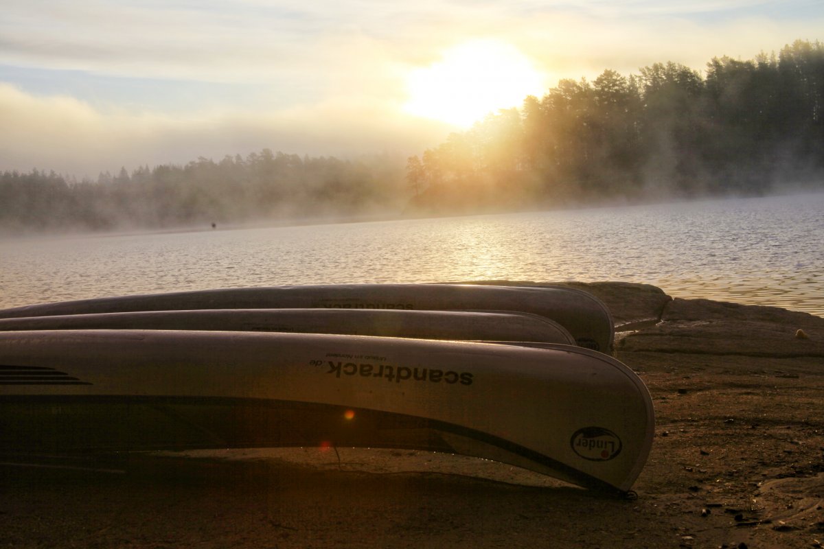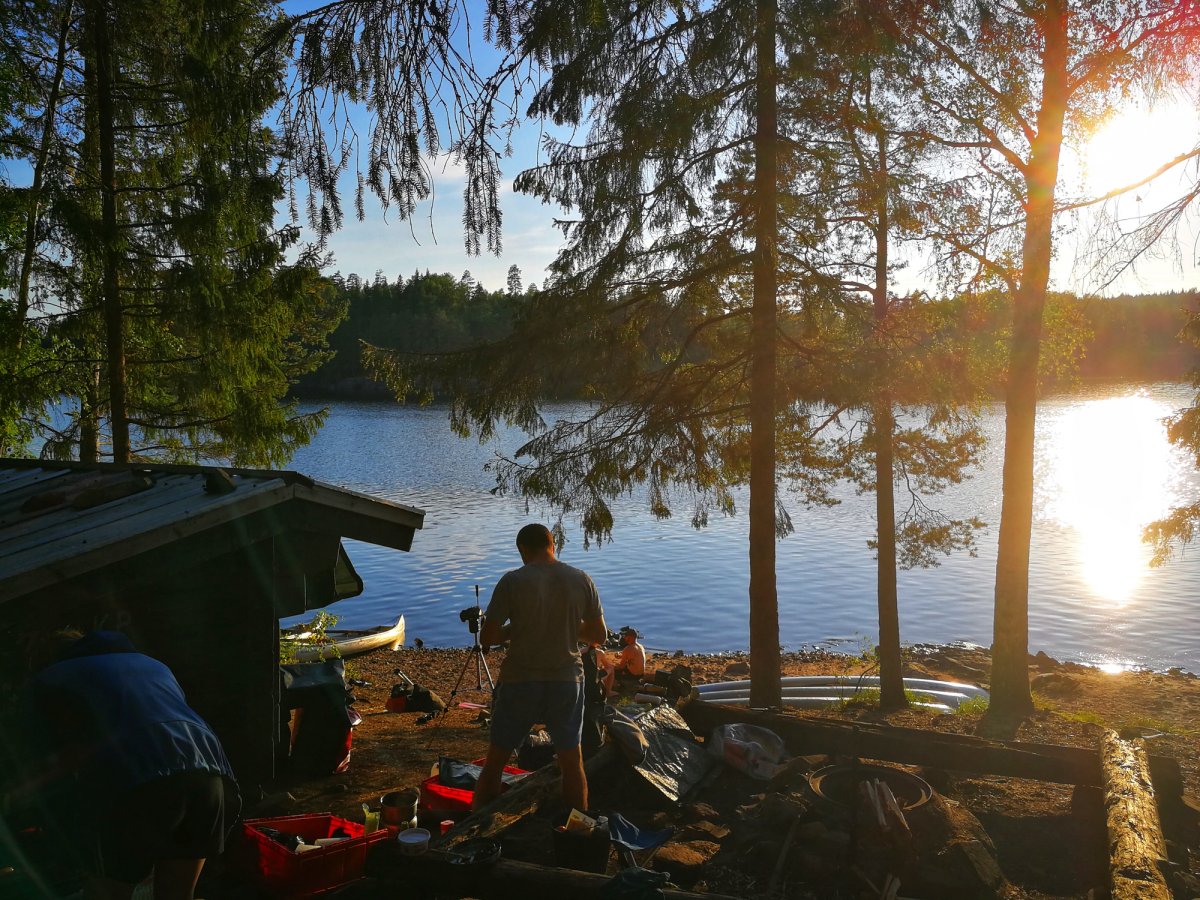 Ich wachte früh morgens auf, da mir die Sonne direkt ins Gesicht schien. Das war eigentlich sehr gut, denn wir wollten an dem Tag weiter zum nächsten DANO paddeln. Also wurde gefrühstückt und alles wieder zusammen gepackt. Wir machten uns auf den Weg zu DANO 17, dies bedeutete einmal den See queren, nichts schweres dachten wir uns, falsch gedacht.