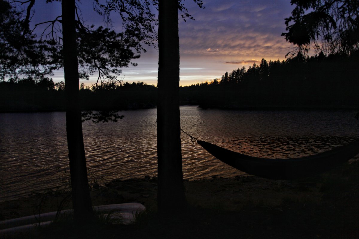 Am Gruppenplatz verbrachten wir einen Großteil des Tages, die restliche Zeit waren wir baden, wie übrigens jeden anderen Tag auch, außer am Regentag, angeln, diesmal sogar mit einem kleinen Barsch als Erfolg, und Sonnenuntergang genießen.