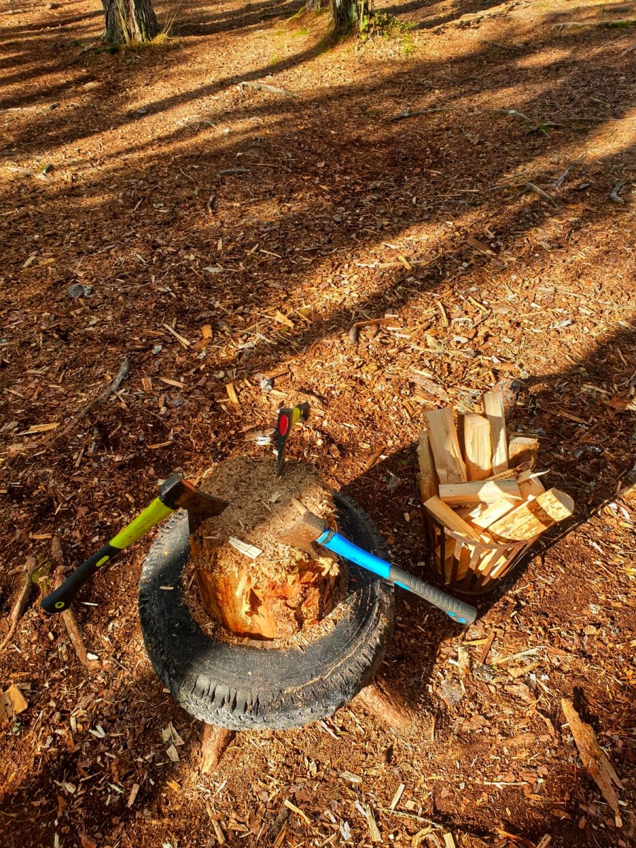 Der Tag war noch gefüllt mit Feuerholz sägen und hacken, das übernahmen Cynthia und Melanie, und die Menge war beachtlich.