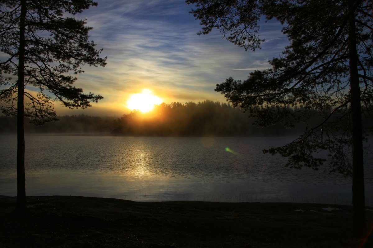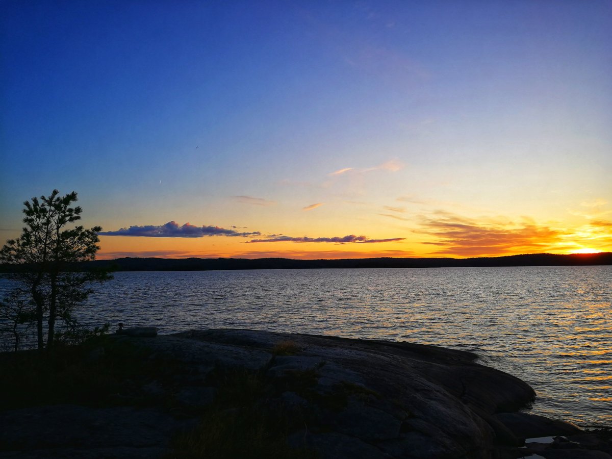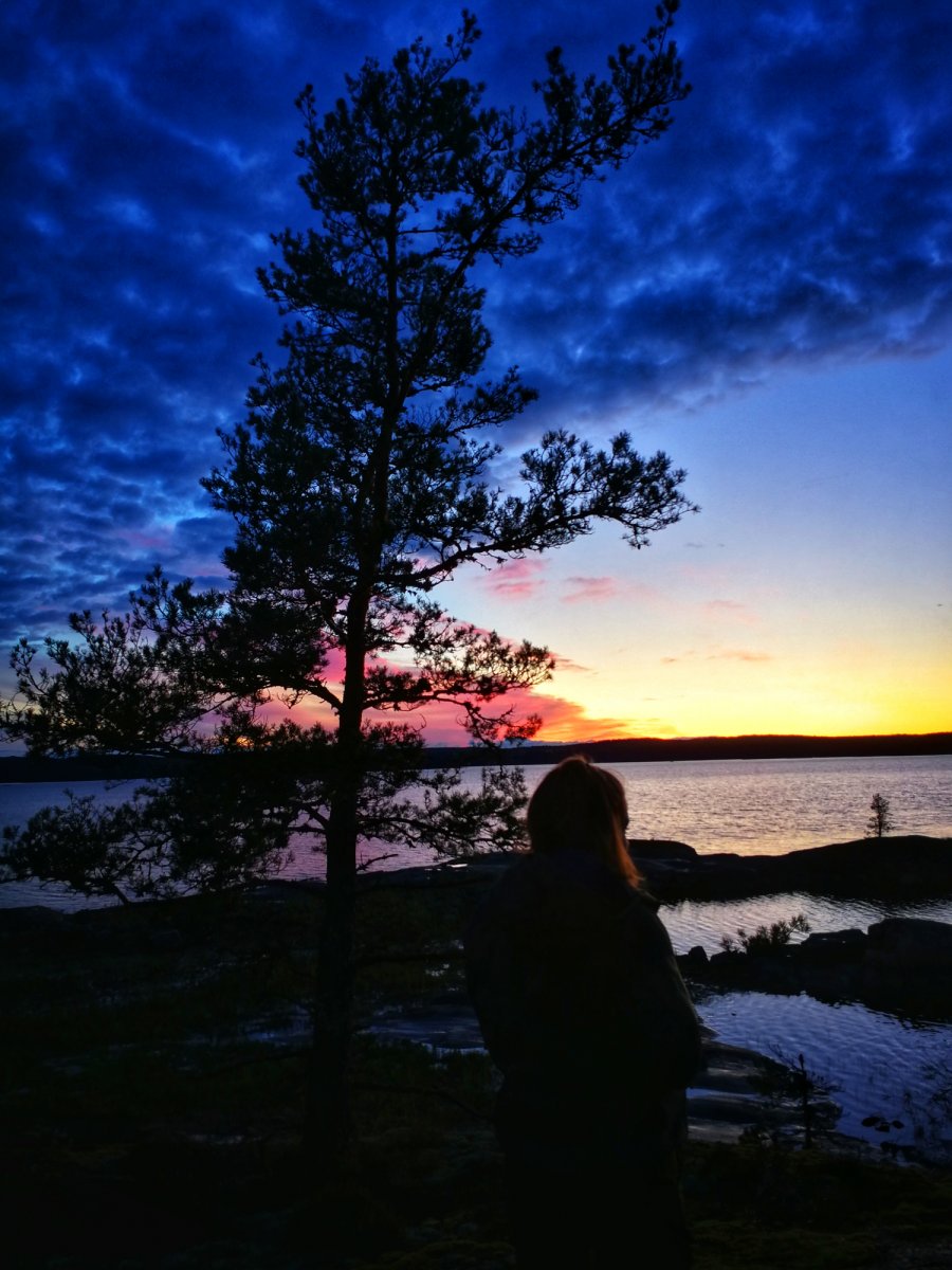 Hier genossen wir bei einem Becher Kaffee den ersten Sonnenaufgang in Schweden. Der Kaffee war auch verdammt wichtig, denn die Nacht im Bus war eher unbequem, warm und kurz.