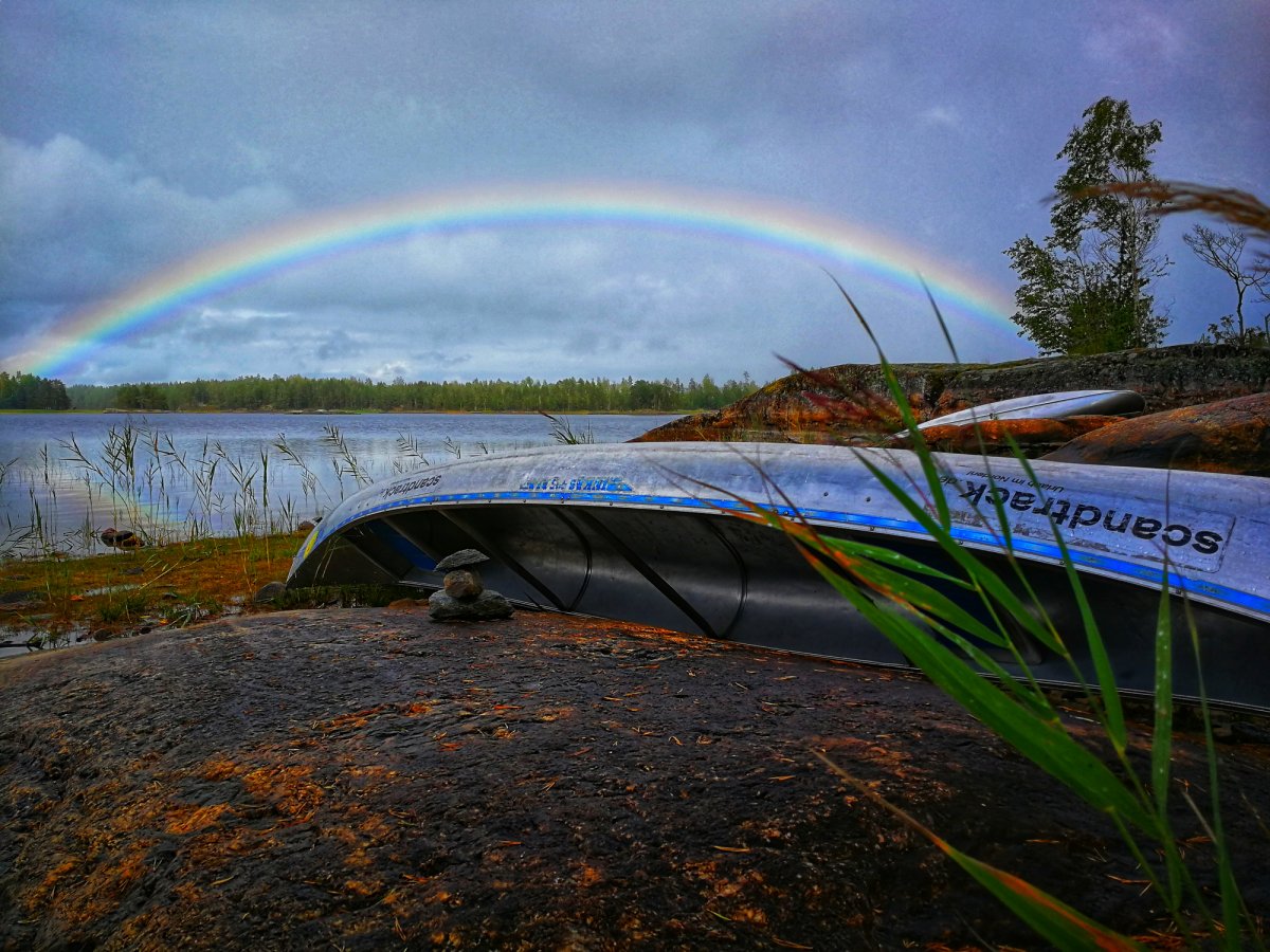 Das Wetter war eher wechselhaft an diesem Tag, sodass sich Regen und Sonne im Wechsel die Hand reichten. Das führte zwar zu einigen sehr schönen Regenbögen, zwang uns aber auch den Tag unter dem Tarp zu verbringen. So war der Tag geprägt von lesen und schnitzen.