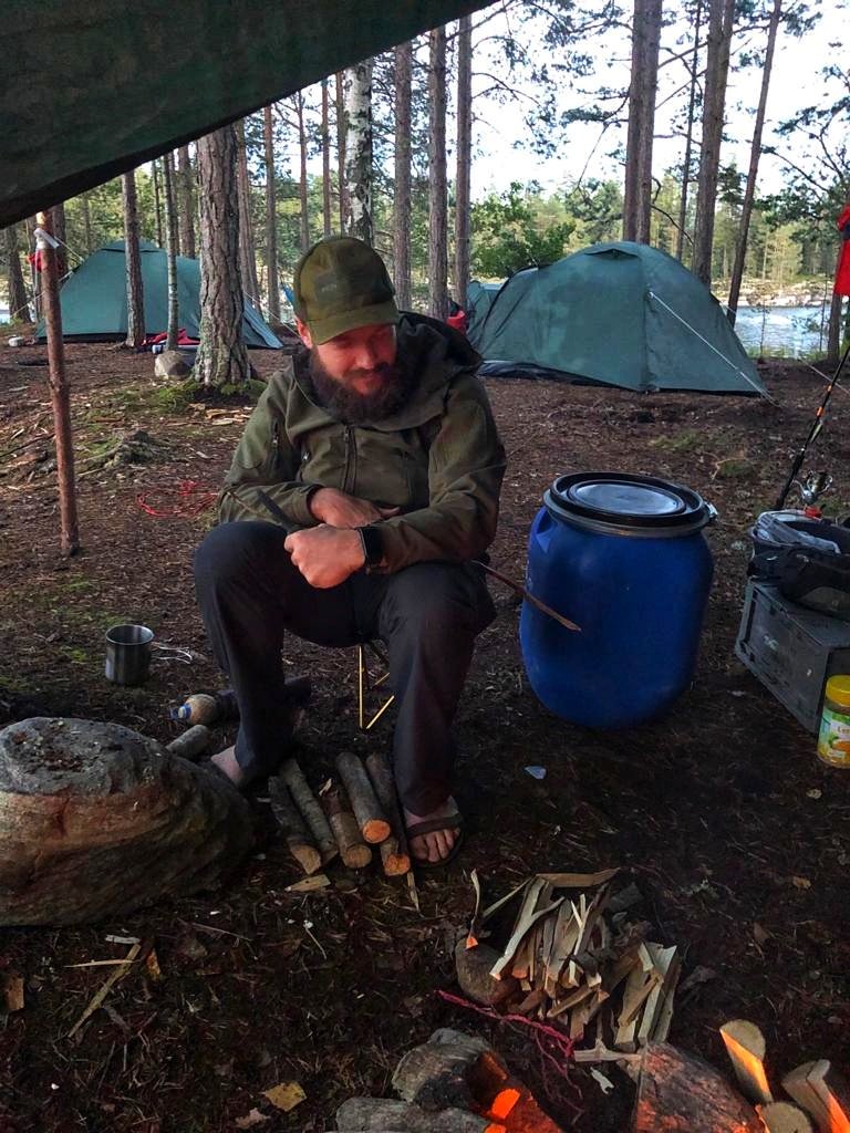 Danach bauten wir unser Lager im leichten Nieselregen zurück und verluden alles auf die Kanus.