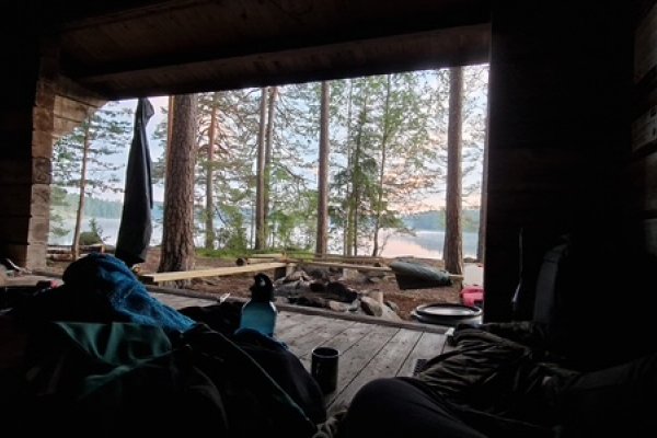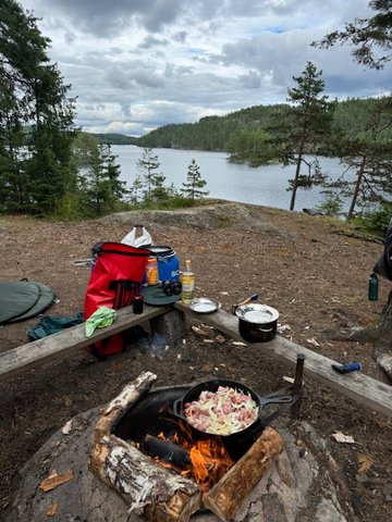 Bereits der erste Tag auf dem Wasser war ein Abenteuer für sich. Die Weite der Seen, die Ruhe der Wälder und das klare Wasser ließen uns den Alltag sofort vergessen. Es dauerte nicht lange, bis wir einen idyllischen Lagerplatz auf einer kleinen Insel mit Dano fanden – umgeben von Natur und fernab jeder Zivilisation. Das Aufbauen des ersten Lagers, das Sammeln von Feuerholz und das erste Kochen in der Wildnis waren nicht nur praktisch notwendig, sondern vermittelten auch ein Gefühl von Freiheit und Selbstständigkeit, das wir in dieser Form kaum kannten.