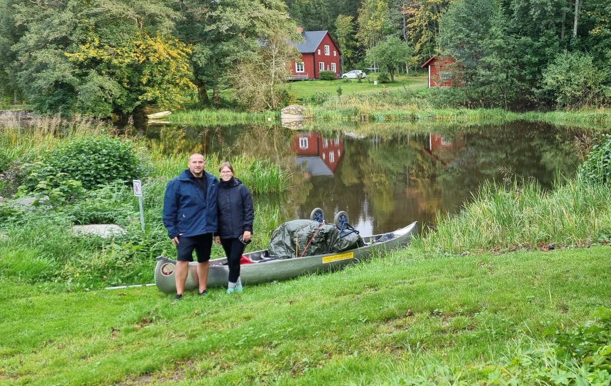 Nach einer langen Autofahrt und mehreren kleinen Zwischenstopps kamen mein Vati und ich ein wenig müde, dafür aber voller Vorfreude in Sandhem an. Freundlich wurden wir im Outdoorcamp Tidan empfangen und gleich darauf ging es für uns schon ans Beladen des Kanus. Ein letzter Blick auf unsere Ausrüstung sowie die wundervollen Islandpferde des Camps und schon ging es für uns los – flußabwärts zu der ersten Übernachtungsstelle am See Gimmesjön. Doch zunächst mussten wir uns erst einmal mit der Karte zurechtfinden, welche anfangs zur Verwirrung führte. Nichts desto trotz kamen wir recht schnell voran. Am See trafen wir auch andere Paddler, welche allerdings die Weiterreise antraten. So konnten mein Vati und ich den Platz zunächst für uns allein erkunden, das Zelt aufbauen sowie ein Feuer entfachen. An diesem Abend versuchten wir uns an Bratkartoffeln, welche zumindest nicht schwarz geworden sind. In der Nacht waren plötzlich Stimmen zu hören, wobei mich im ersten Moment ein ziemlich mulmiges Gefühl überlief. Jedoch stellten wir am nächsten Morgen fest, dass es super nette Schweden waren, die einfach nur zu spät losgefahren waren, sich aber glücklicherweise gut auskannten.
