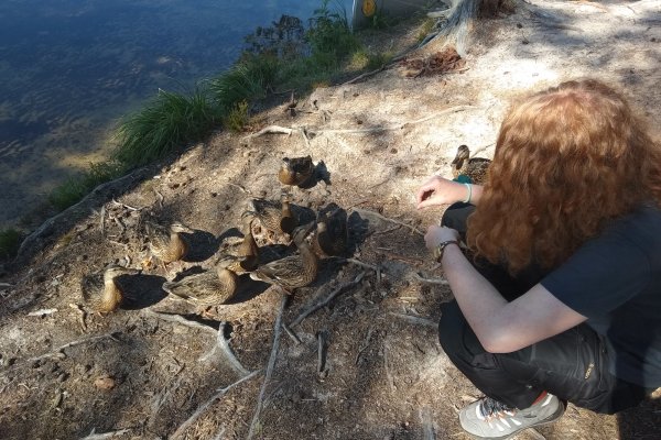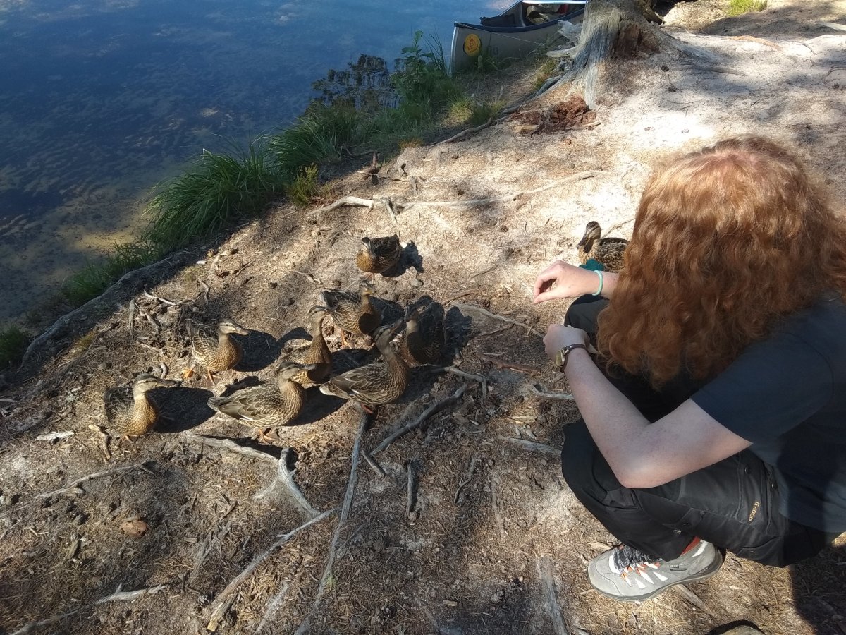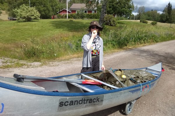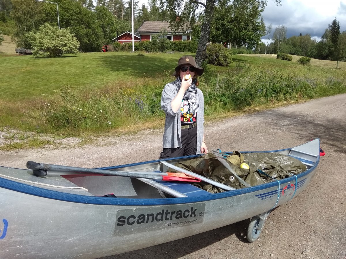 Nach dem Frühstück waren wir wieder früh auf dem Wasser und erreichten auch schon bald Gustavsfors. In Gustavsfors erkundeten wir den kleinen Ort und kauften bei dieser Gelegenheit noch einiges ein. Zurück an unserem Kanu, wurden wir von einer Gruppe recht zutraulicher Enten überfallen.