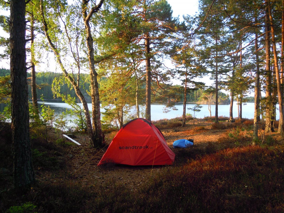 Diesen Tag hatten wir eine lange Umtragestrecke vor uns, nämlich um in den Stora Le überzusetzen. Hier waren wir heilfroh, dass wir den Buggy dabei hatten, denn die zwei Kilometer ohne ihn wären Kräfte raubend gewesen. Nun ging es zügig Richtung Foxen, hier waren die Ufer gesäumt von roten Zelten. Vorher hatten wir uns schon gewundert wo all die andern Kanuten blieben. Diesmal haben wir eine Insel in "Beschlag" genommen und wild übernachtet. Zum Abendessen gab es Reis mit Pilzen und natürlich wieder das Feierabendbier.