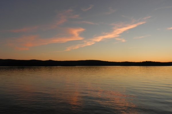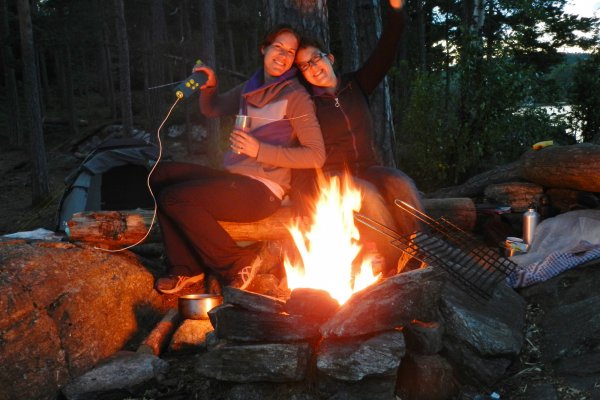 Zum Abendessen ließen wir uns unsere erste Outdoorpizza schmecken, über dem Lagerfeuer gebacken. Als Nachspeise gab’s vom restlichen Teig Stockbrot mit Nutella.Hier machten wir das erste Mal Bekanntschaft mit den schreienden Eistauchern. Sie schreien sich so lange herzerbärmlich zu bis sie sich auf der Mitte des Sees treffen. Dann schwimmen sie glücklich und zufrieden und vor allem leise zusammen weiter.